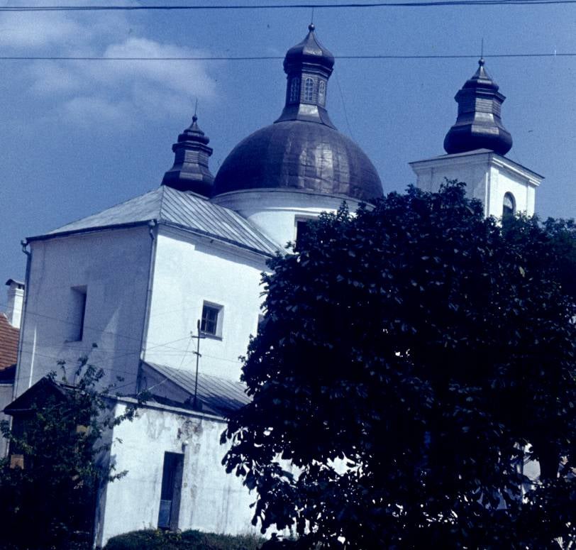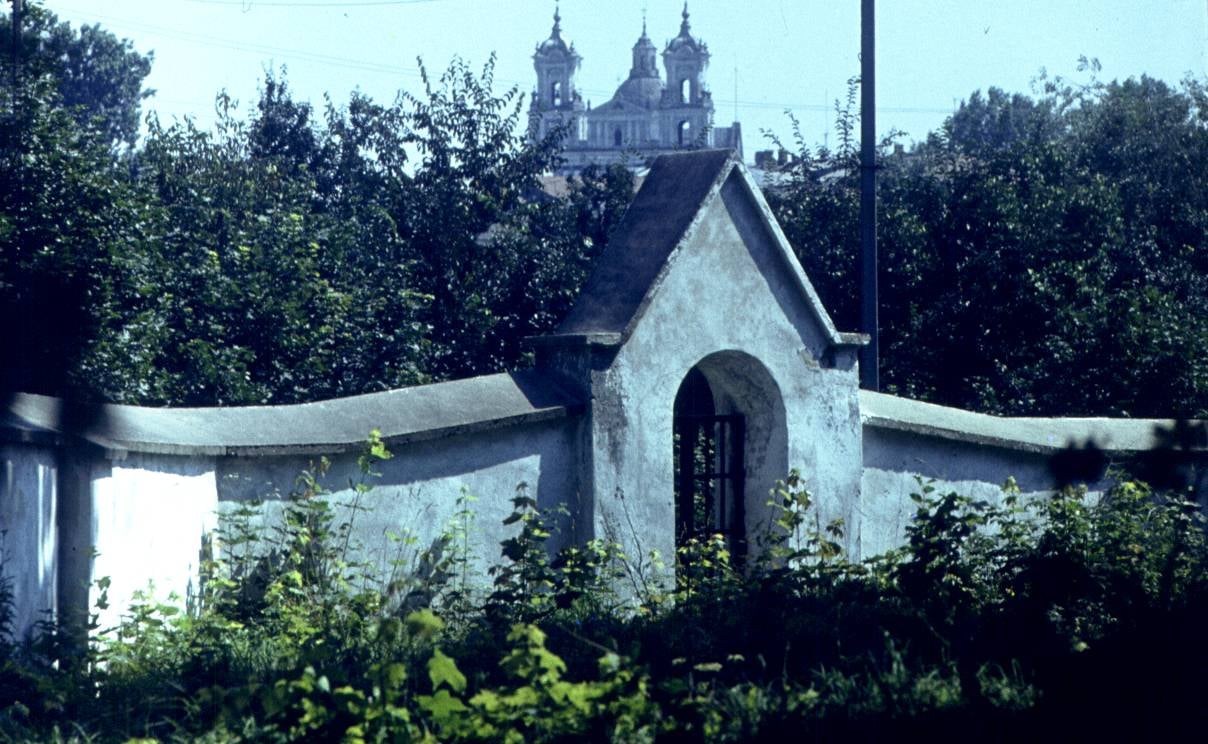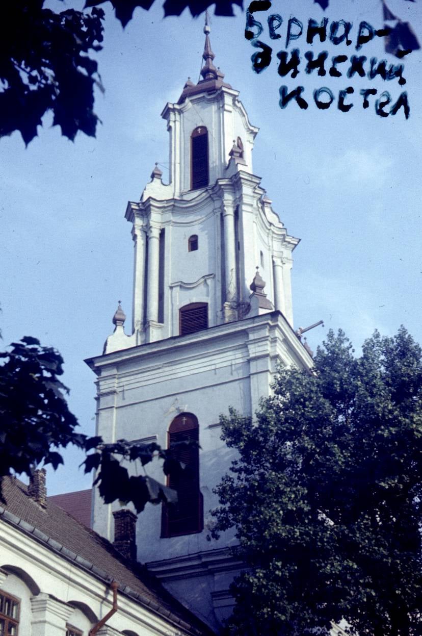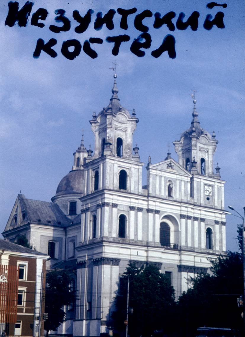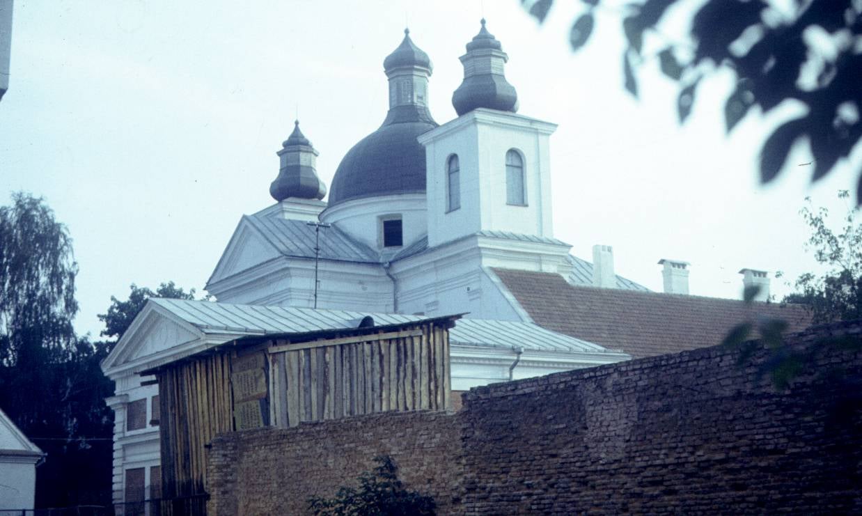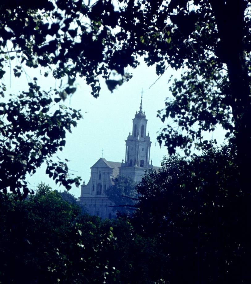Вид на Фарный костел с территории Коложской церкви, 1980-е гг.
