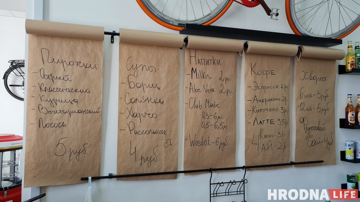 Кафе предлагает замороженный фаст-фуд и ориентируется на здоровое питание. «Те, кто ездят на велосипедах, вряд ли захотят есть салат с майонезом или пирожки на кипящем масле», — объясняет Змитрович.
