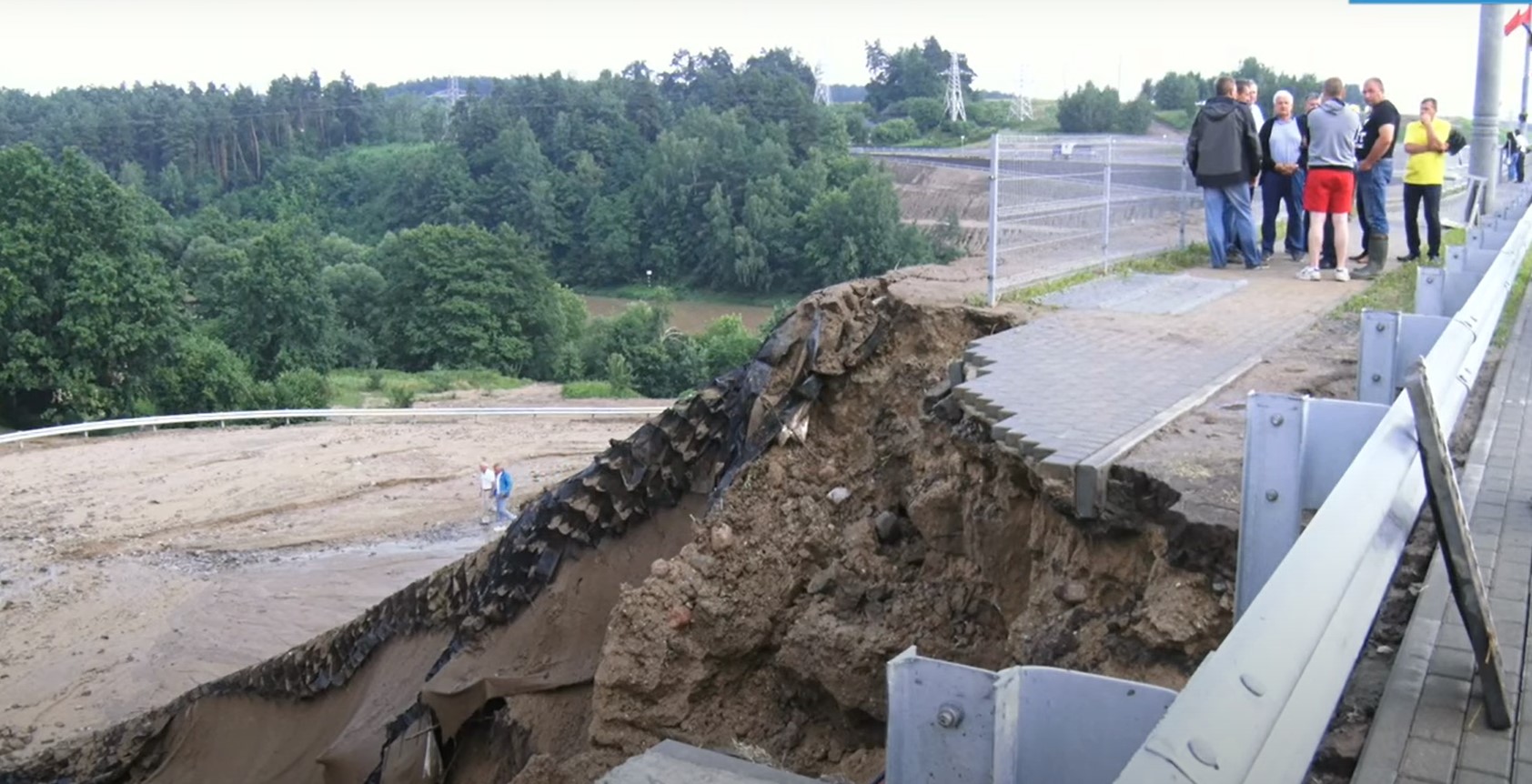 Открытие моста переносят уже третий раз, и второй раз его размывает дождем. Первое открытие планировали на 3 июля, День Независимости. Тогда его перенесли. Через пару дней, после сильного ливня 5 июля, затопило новую развязку у Погоран, частично обрушилась проезжая часть, тротуар, размыло склоны. Это случилось из-за того, что на них еще не выросла трава, рассказал тогда Владимир Караник для «Гродно Плюс», к тому же была повреждена ливневка. Все восстановили, ливневку переделали.