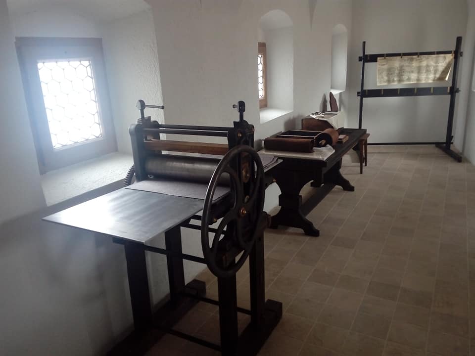 Станок не является частью исторической экспозиции, так как каких-то точных сведений о типографии в замке не сохранилось, пояснил Hrodna.life Илья Андреев, руководитель студии imago.by, исследователь истории картографии. Тем не менее можно предположить, что работа сеймов Речи Посполитой, которые проходили иногда и в Гродно, требовала возможности печати.