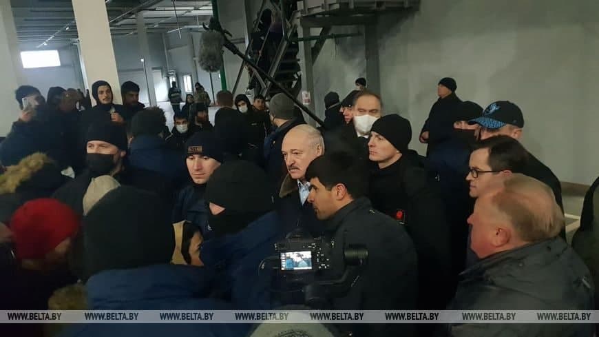 Александр Лукашенко 26 ноября приехал в транспортно-логистический центр возле пункта пропуска “Брузги”. Его встретили Виктор Лискович, Вячеслав Шевцов и Юрий Караев, которые доложили об условиях проживания мигрантов, сообщает БелТА.