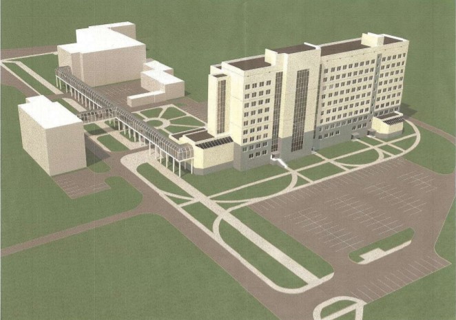 Новое девятиэтажное здание планируют разметить на участке рядом с Гродненской университетской клиникой и Институтом биохимии НАН. Сроки начала строительства пока не называют. В перспективе здание могут соединить с существующим зданием лабораторного корпуса клиники и Институтом биохимии с помощью застекленных крытых галерей. Их видно на визуализациях, но на первом этапе их строительство не запланировано.