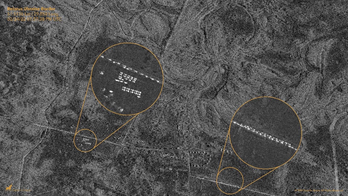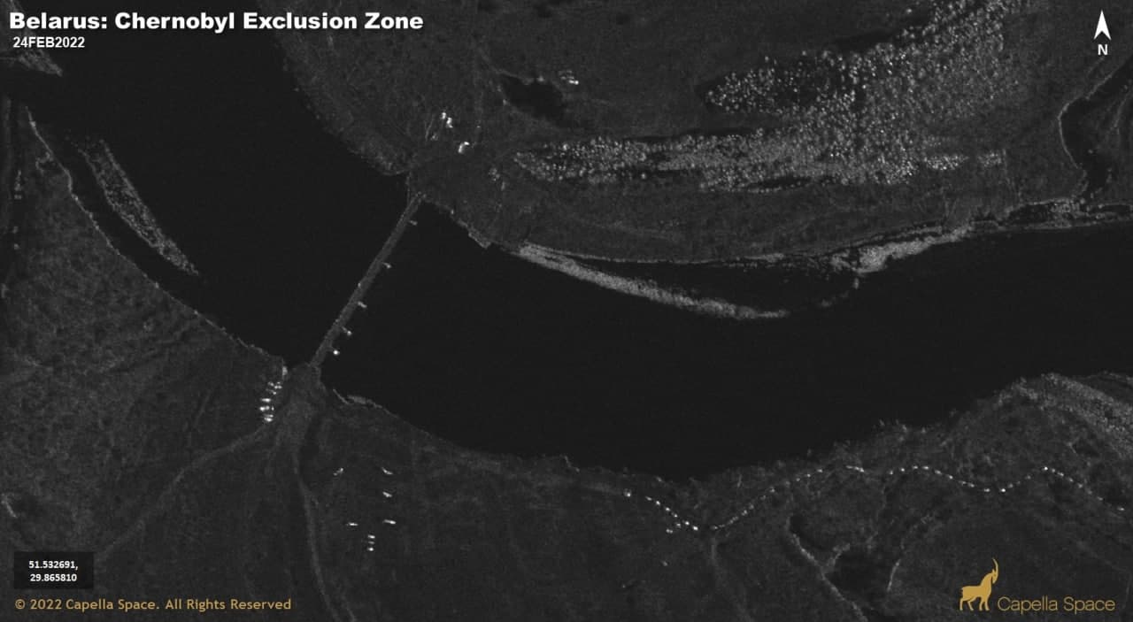 На спутнікавых здымках кампаніі Capella Space бачна, што ў беларускай частцы Чарнобыльскай зоны адчужэння, каля закінутай вёскі Даўляды, нейкі час таму з’явіўся пантонны мост праз Прыпяць. Па ім, верагодна, і рухаліся расійскія войскі ў кірунку Украіны.