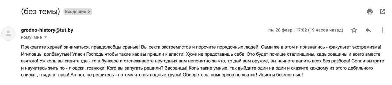 Студенты Гродненского государственного университета имени Янки Купалы сделали рассылку на почты преподавателей с целью призвать всех неравнодушных присоединиться и продемонстрировать свою позицию касательно войны.