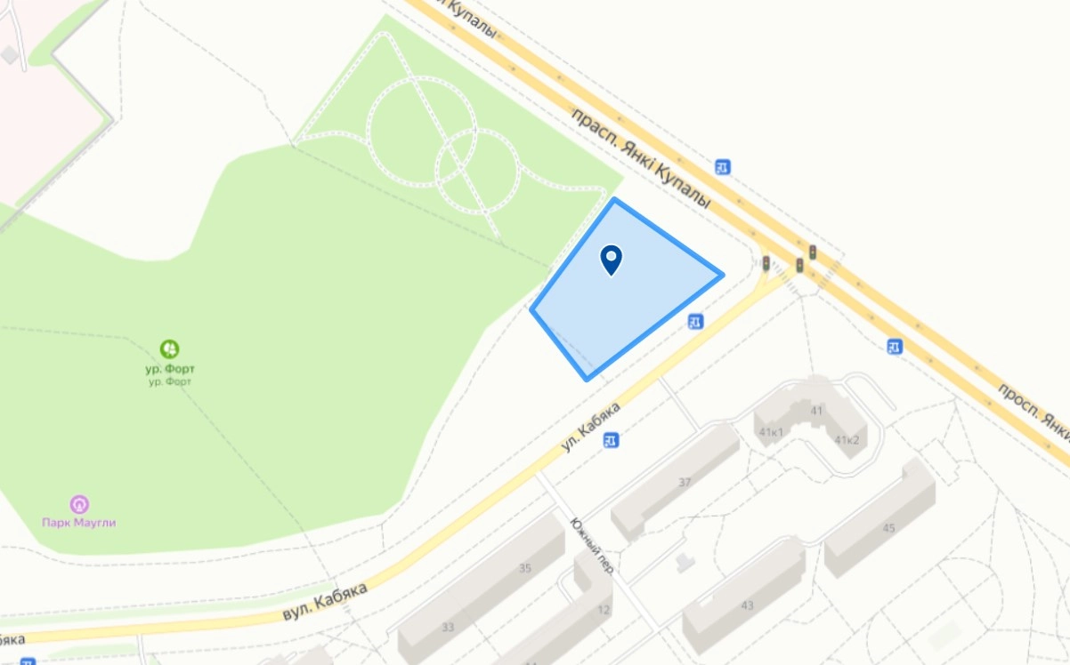 Новый торговый центр должен появится между свободной от застройки территорией с дорожками и посадками, проспектом Янки Купалы, улицей Кабяка и лесным массивом урочища Форт. Основной подъезд к нему хотят сделать по проектируемому проезду от улицы Кабяка. Перед входом будет парковка на 92 машино-мест. По плану тротуары выложат из плитки, установят урны, скамейки, на свободных местах сделают газон.