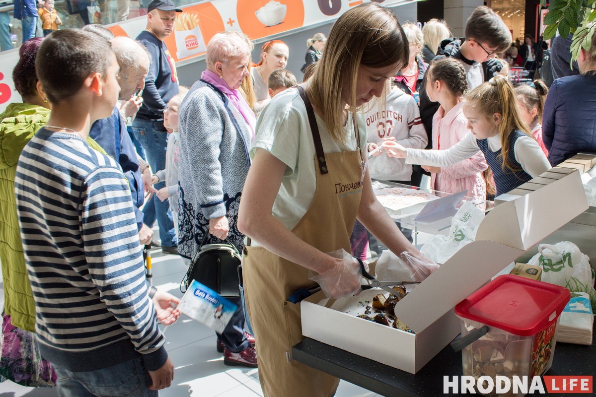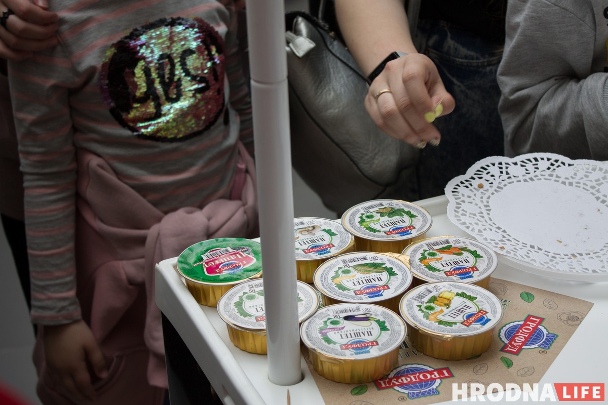 На фестивале представили шесть стендов с едой. Фишкой предприятия “Грофуд” стал вегетарианский паштет. “Молочный мир” угощал напитками из сыворотки, творожными сырами и мороженым. Гродненский мясокомбинат удивлял говяжьей колбасой с черносливом, а Туровский молочный комбинат — рикоттой с печеным яблоком и корицей. Но самыми желанными для гостей оказались сладости — шоколадные пончики от предприятия “Пончесса” и медовый торт от “Тортбери”. Дождаться этих блюд было сложнее всего — их быстро разбирали дети, а новые раздачи начинались не скоро.