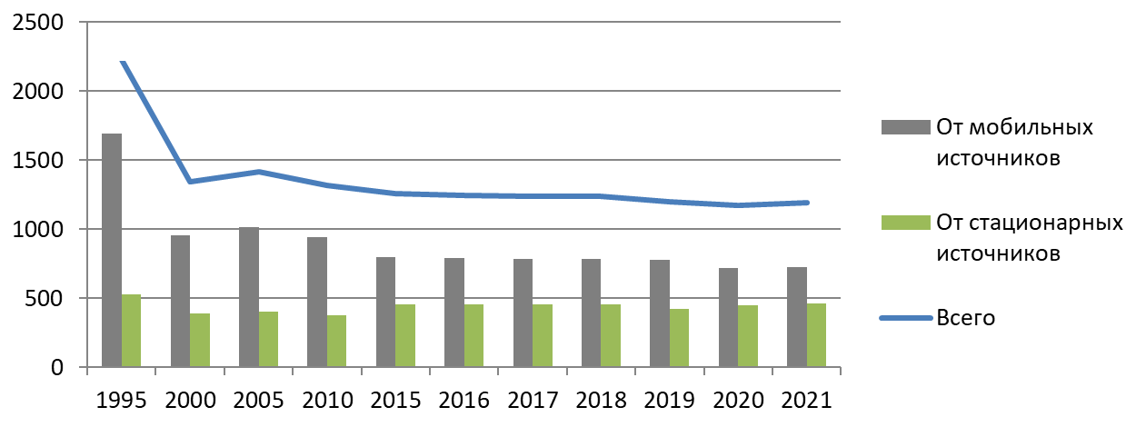 Всего в Беларуси в 2021 году количество выбросов составило 1192,9 тыс. тонн. Большая часть — 61% (728 тыс. тон) выбросов попадает в воздух от мобильных источников и самоходных машин. Это на 5,2% меньше, чем было в 2015 году и на 9,6% меньше чем в 2010 году.