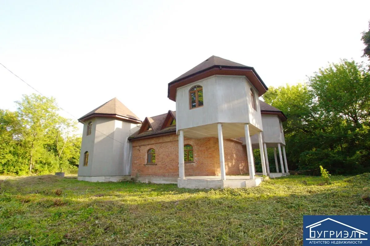 Дом двухэтажный, с двумя санузлами. Он представляет из себя центральную кирпичную часть с двускатной крышей и мансардным этажом и пристроенные к ней с четырех углов башни. Две из них стоят на опорах. «Изысканность, простота и монументальность этого дома окутана историей», — сказано в описании.