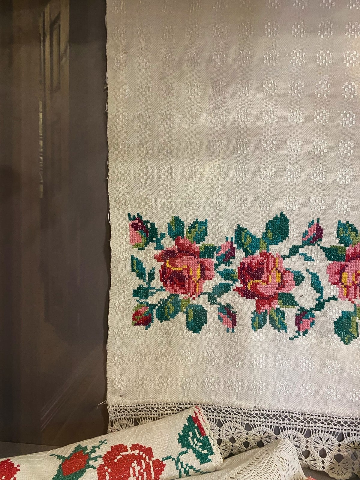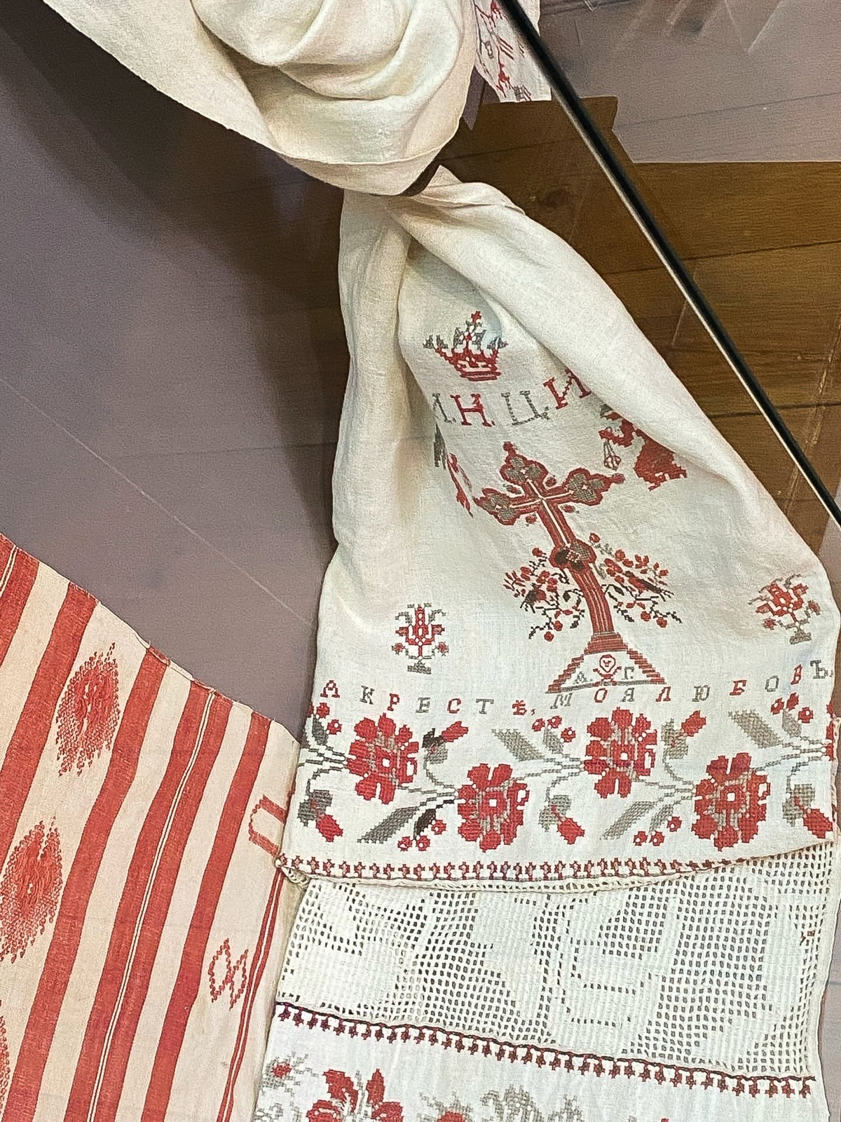 На выставке в Музее истории Городницы представлены полотенца, ковры, скатерти и пояса от конца ХIХ века до 80-х годов ХХ, а также и некоторые принадлежности для обработки льна.