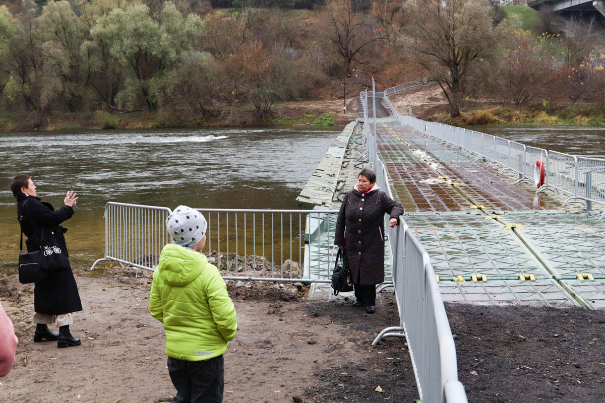 Хоть официальное открытие понтонного моста через Неман прошло в пятницу, полноценно он «заработает» 8 ноября. С этого дня пеший проход по Новому мосту закроют на 1,5-2 месяца. Понтонная переправа уже стала местом для фотосессий гродненцев.