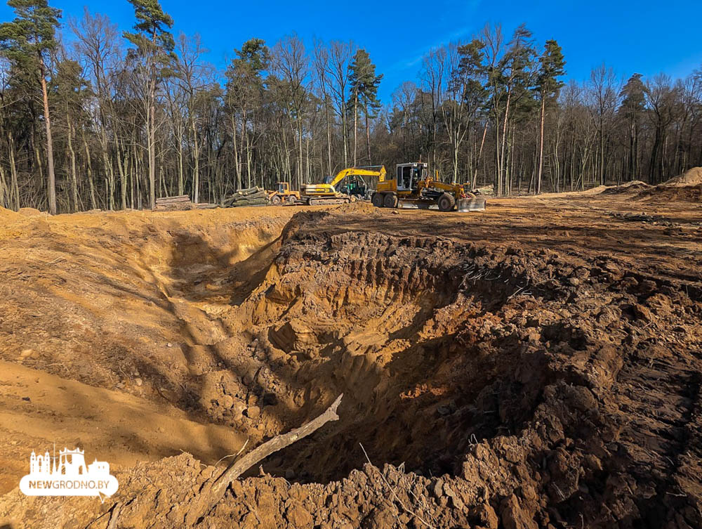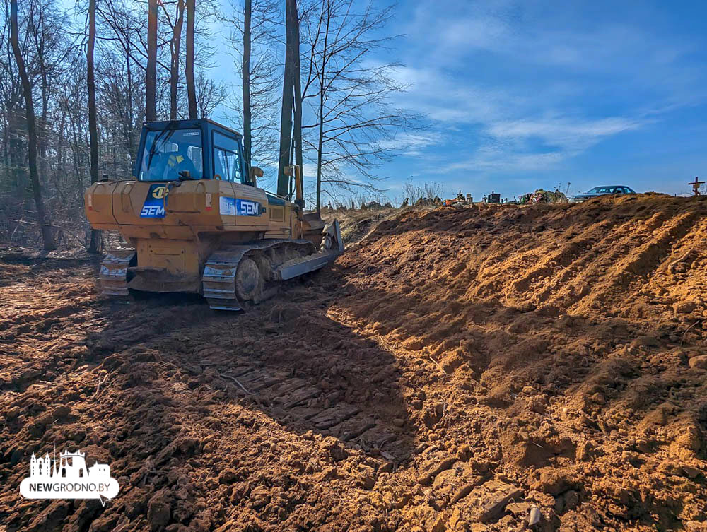 Рядом с кладбищем “Аульс” работает тяжелая техника — экскаваторы и тракторы. Фотографии опубликовал NewGrodno.by. Там выкапывают пруд-осушитель. Он нужен, чтобы вода из захоронений не попадала через лес в деревню Путришки.