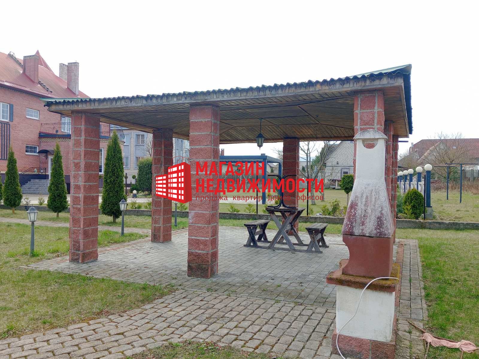 Коттедж в виде замка общей площадью 474 кв. м построен из кирпича. С ним идет благоустроенный земельный участок площадью 13 соток в частной собственности. Он огорожен по периметру металлическим забором.