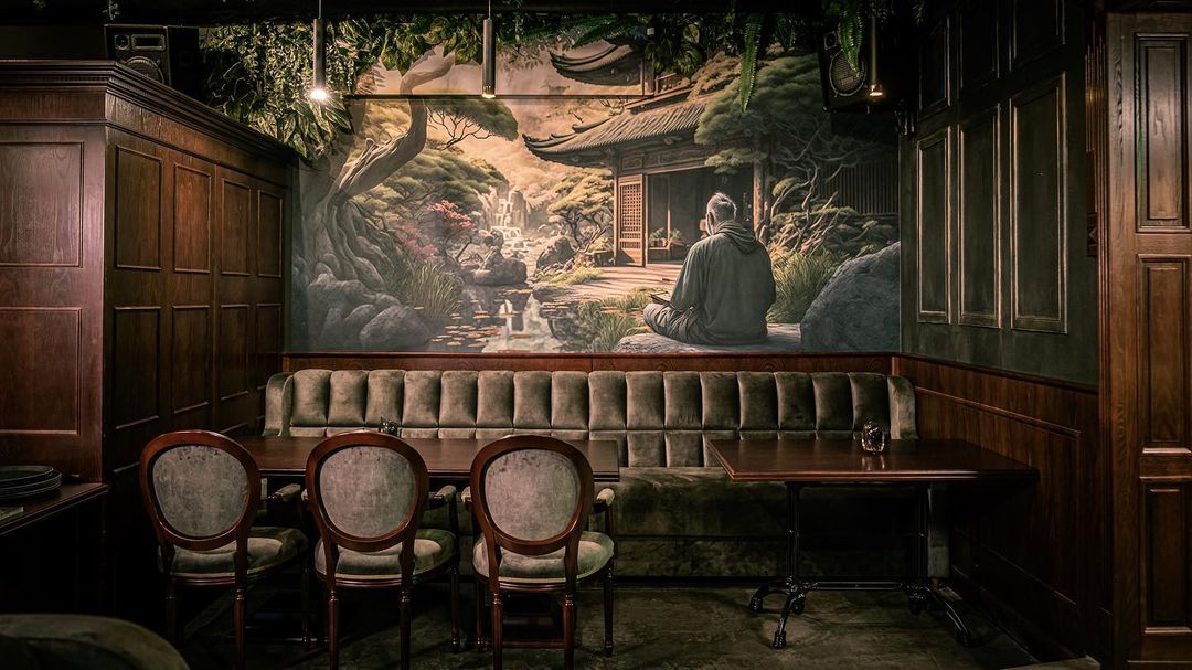 В интерьере добавили “природные” фрески. Например, в одной из залов есть деревянная декоративная графика с красочным колибри. Украшением будущего караоке-зала стали шпонированные панели на потолке. Чтобы визуально увеличить пространство и количество света в комнате, добавили много зеркал. На одну из стен поместили плакаты. Они, по словам создателей, являются отражением любви к искусству.