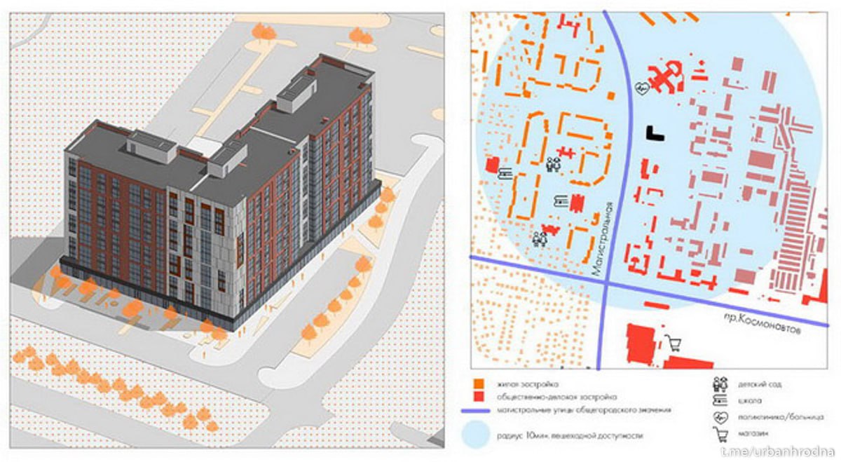 Комплекс построят возле поликлиники №5. Кирпичный 10-этажный дом будет состоять из двух смежных секций, которые образуют закрытое дворовое пространство. Будет три подъезда. Квартиры — от 38 до 80 кв. м. Часть квартир будет со свободной планировкой.