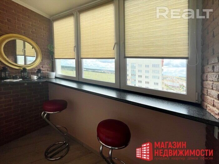 Полы сделаны из натурального дерева. На первом этаже – санузел с ванной, на втором – с душевой кабиной и стиральной машиной. Есть две застекленные лоджии, одна — с барной стойкой и стульями. Из окон вид на город, лес, поле и закаты.
