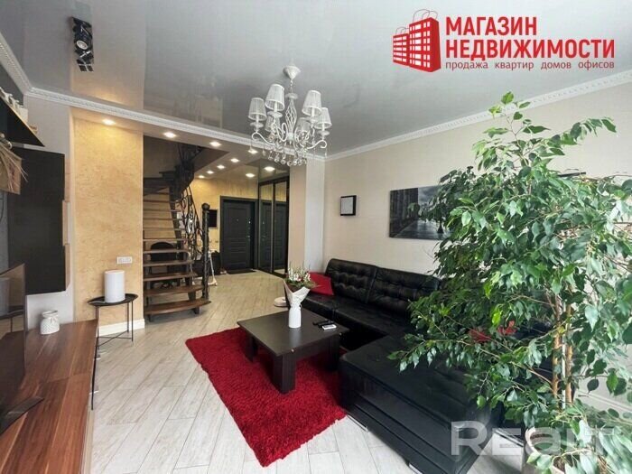 Двухуровневую трехкомнатную квартиру продают на Кремко, 23 в Гродно. Лестница сделана из массива дуба. Перила были вручную выкованы по индивидуальному заказу. “Каждый сантиметр пространства квартиры продуман и воплощен с душой, при ремонте использовались лучшие материалы”, — сообщают продавцы.