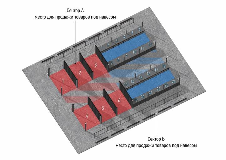 Крытые торговые ряды на парковке смонтировали зимой 2023 года в целях эксперимента. В случае его успеха количество торговых рядов собирались увеличить.