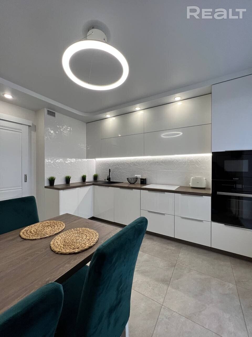 Двухкомнатная квартира по ул. Суворова, 306 в ЖК «Колбасино» продается в Гродно. В квартире — ремонт в светлых тонах с общей концепцией по всей площади. В интерьере — много подсветки и дерева.