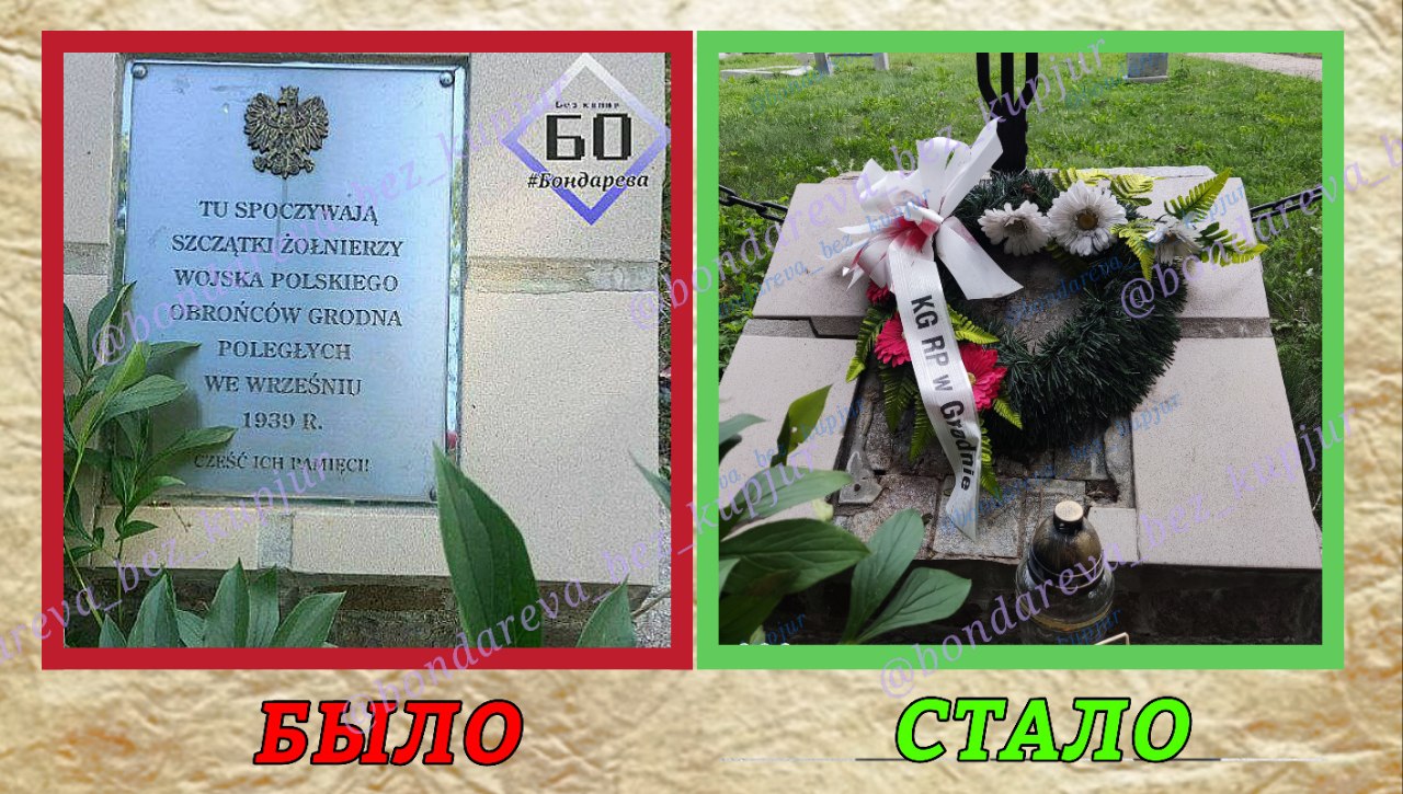 На военном кладбище в Гродно есть захоронения польских, немецких и российских солдат. Польские относятся к советско-польской войне, другие к Первой мировой. Также на кладбище поставлен памятник репрессированным польским офицерам с памятной табличкой, однако теперь табличку сняли, прикрыв это место венком, сообщает “Свабода”.