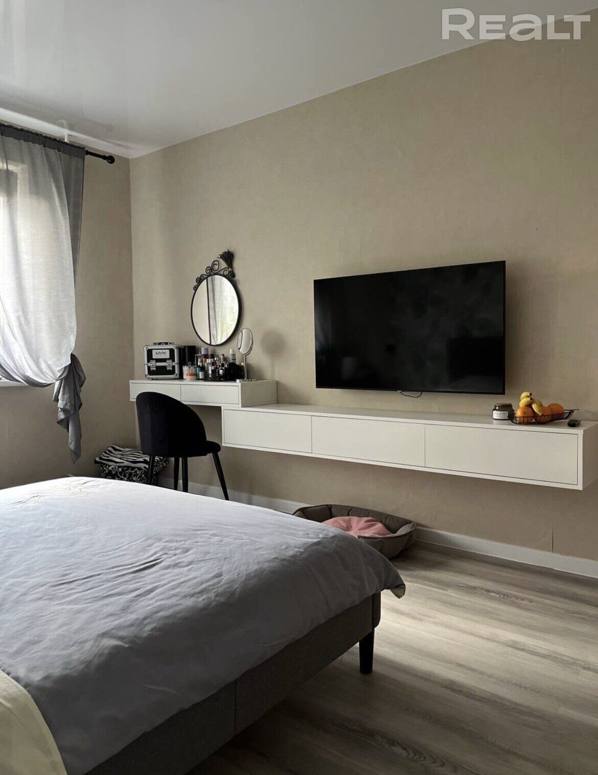 Квартира готова для проживания. Обещают аккуратный подъезд, “приличных” соседей и достаточное количество парковочных мест. По периметру дома установлено видеонаблюдение. Квартира под сигнализацией. В шаговой доступности лесопарк и берег Немана, остановки общественного транспорта, магазины, школы, детские сады, до центра города — 10 минут на машине.
