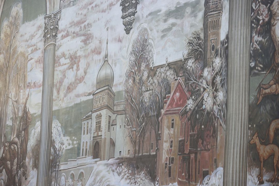 Инициатор создания мурала — владелец частной галереи холодного оружия “Арсенал” и бывший многолетний директор Гродненского мясокомбината Анатолий Гришук. Автор мурала — гродненский художник Владимир Качан.