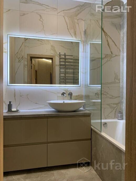 Общая площадь квартиры — 74,8 м². При ремонте исправили типичные ошибки застройщика, уверяют продавцы. Выровняли стены, перезалили стяжку, переделали стыки потолка и стен, развели сантехнику. Потолок окрашен. На полу уложен кварцвинил с высокой износостойкостью, звукоизоляцией, влагостойкостью. Санузел — раздельный. Там есть стиральная машина и сушка. В ванной — дополнительная подсветка.