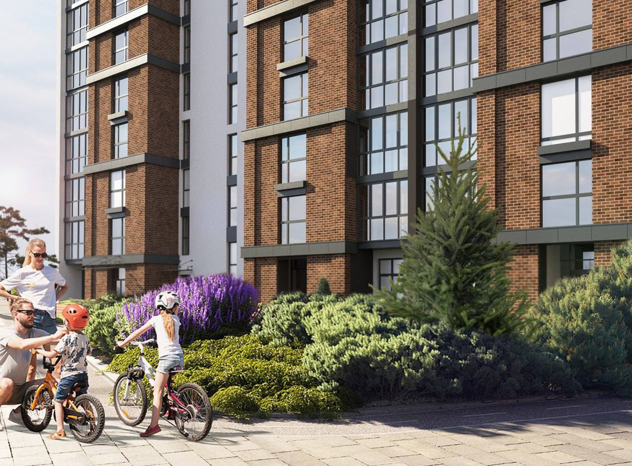 Входы в подъезды будут со двора, с уровня тротуара. На первом этаже разместят помещения для детских колясок и мойки лап домашних животных. Для велосипедов предусмотрен крытый велобокс. В каждом подъезде поставят высокоскоростной лифт. Квартиры будут от 37 до 80 кв.м, со свободной планировкой, высота потолков — от 2,7 м.
