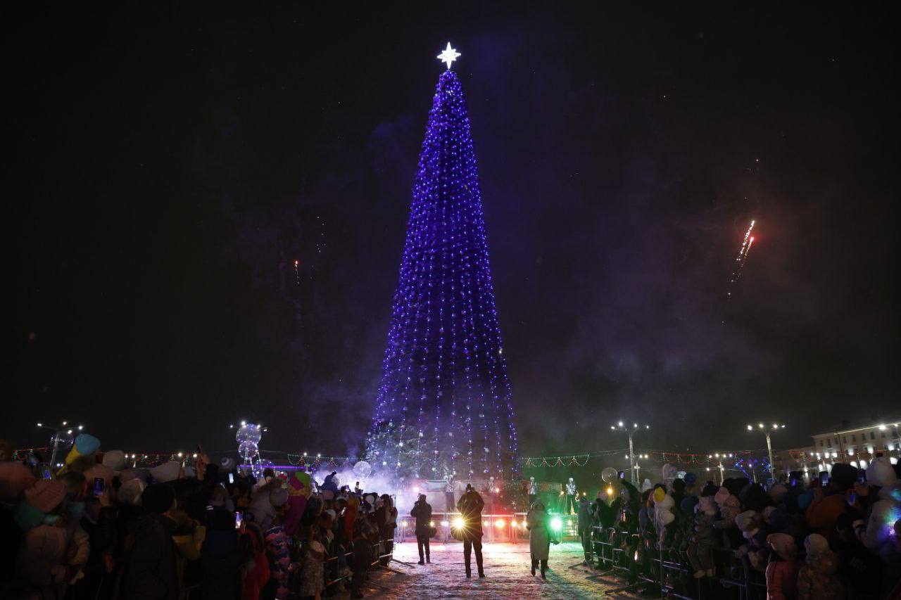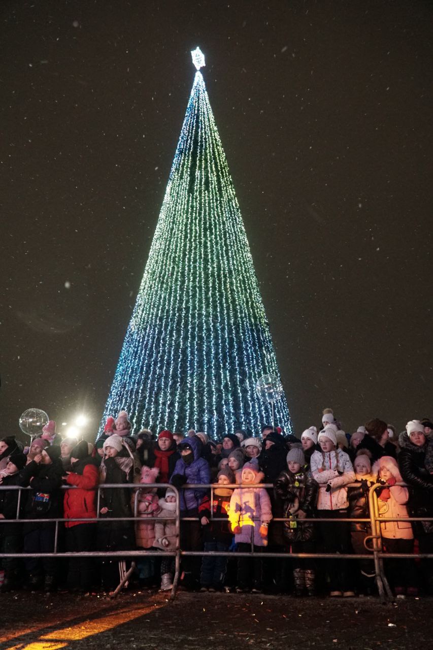 Главную елку в Минске зажгли на Октябрьской площади 10 декабря 2023 года.