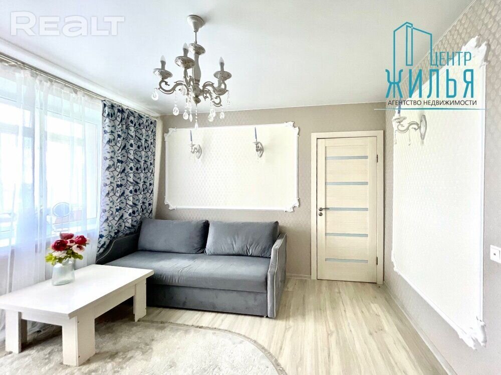 В Гродно продается двушка, перепланированная в трешку. Зал на 20 “квадратов” здесь разделили на две комнаты. Так, кроме спальни и зала, появилась еще и детская. Квартира продается частично с мебелью.