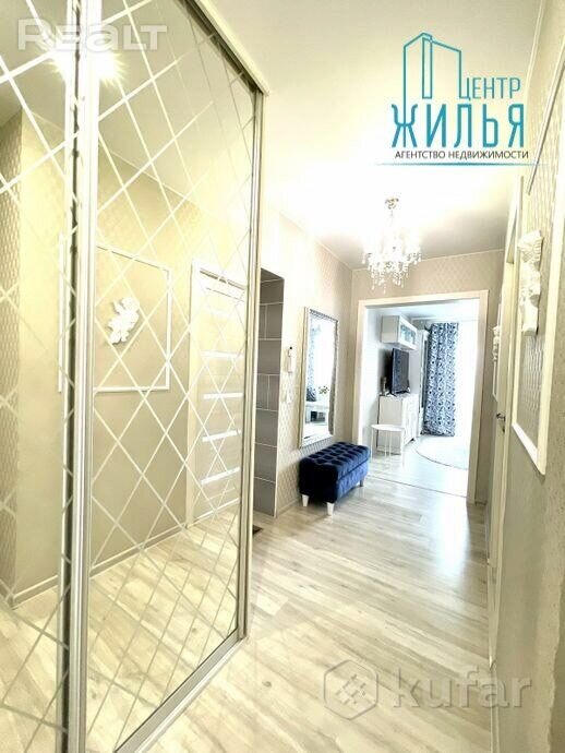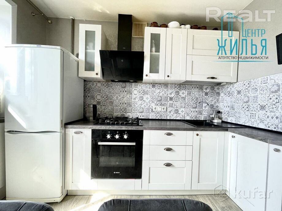 На кухне — встроенная техника Bosh: газовая варочная панель, духовой шкаф, вытяжка. Для хранения вещей есть шкаф-купе в прихожей. Остальная мебель — по договоренности.