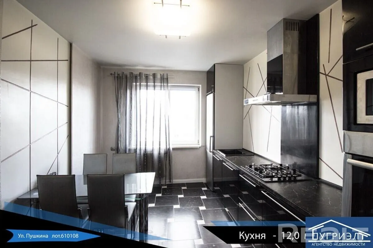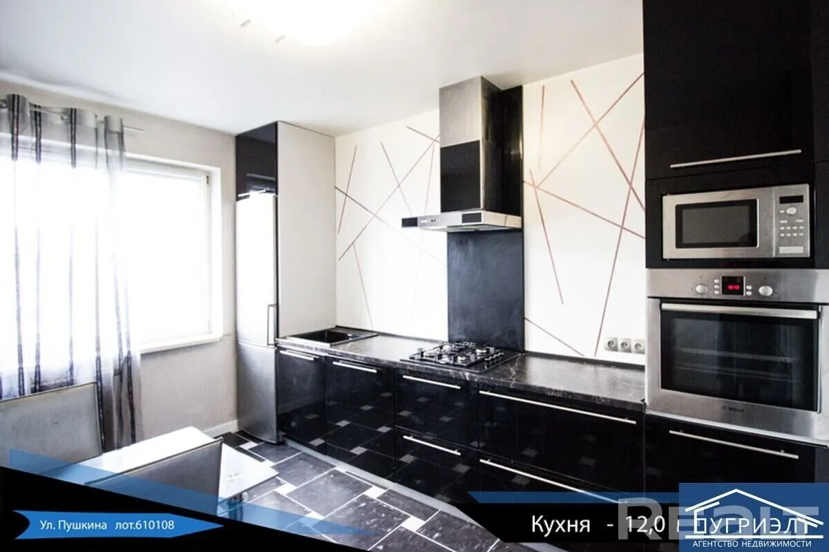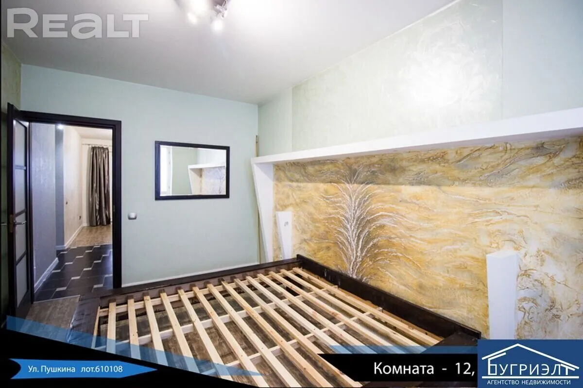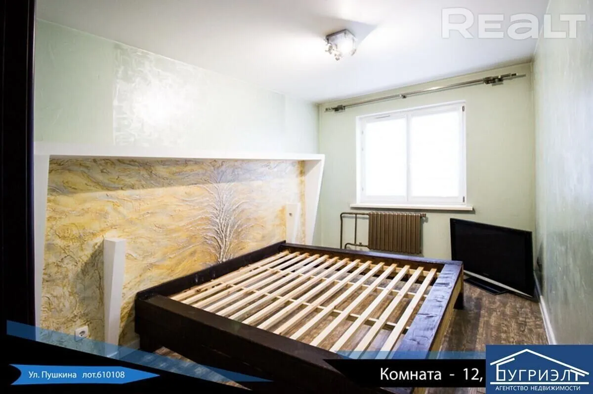 В Гродно можно купить трехкомнатную квартиру на Пушкина. После продажи в ней остается вся мебель и техника. В зале — стильный ремонт, стена под дерево и открытые балки на потолке.