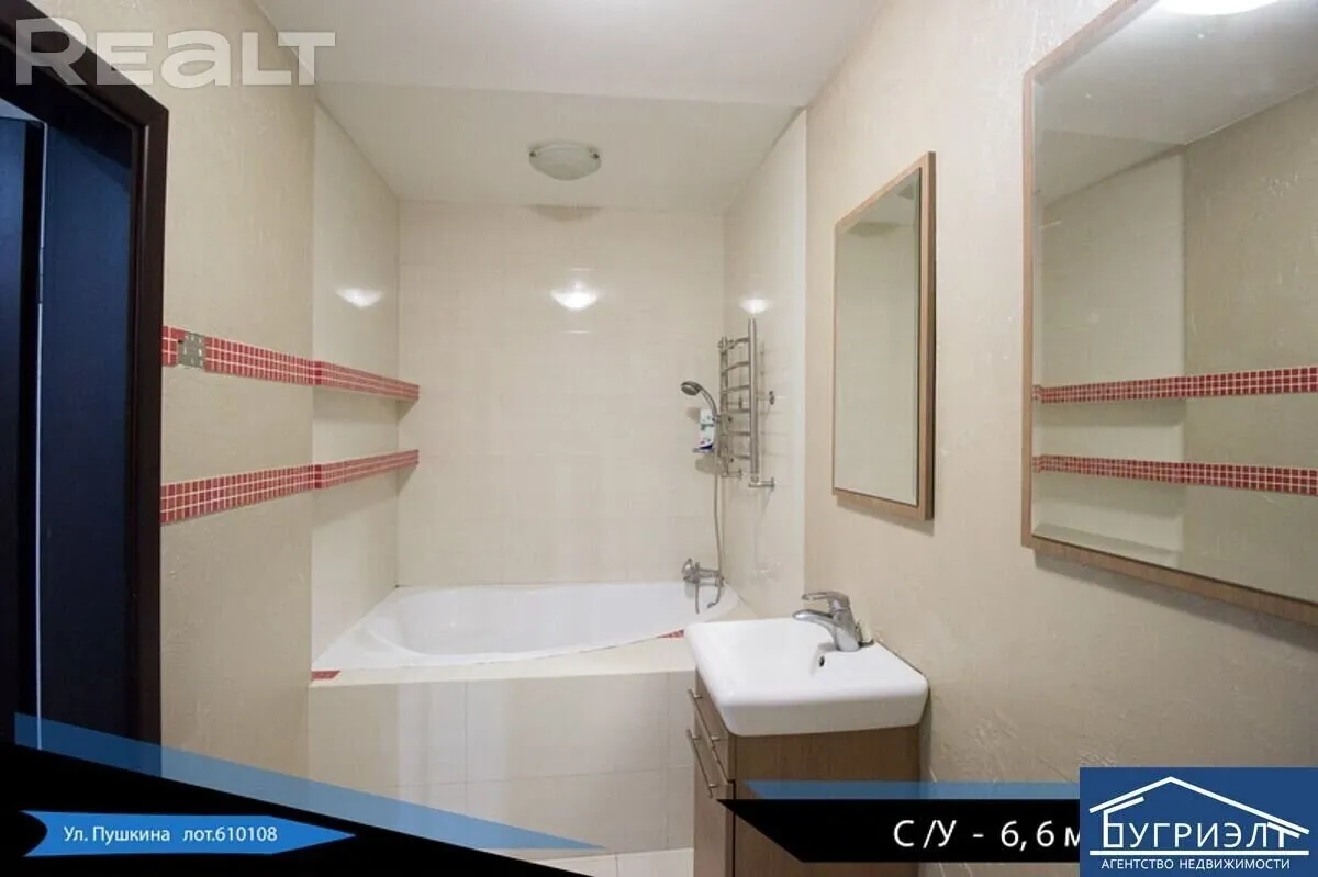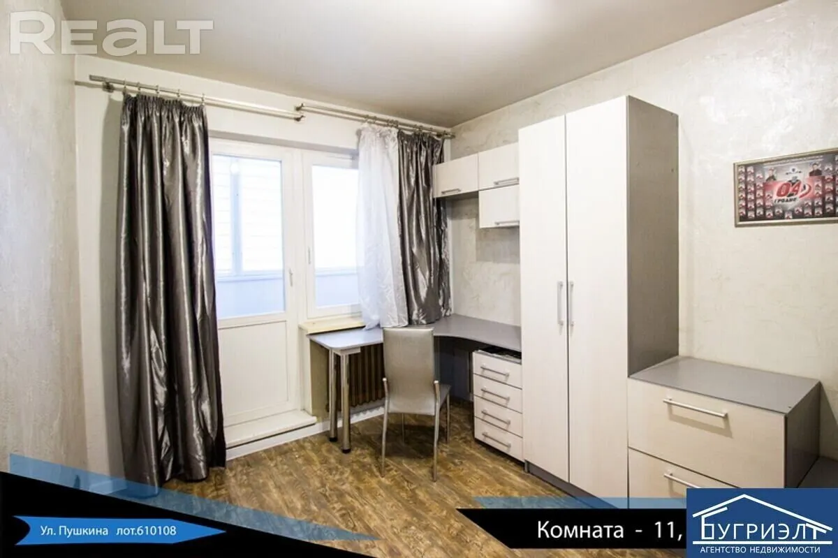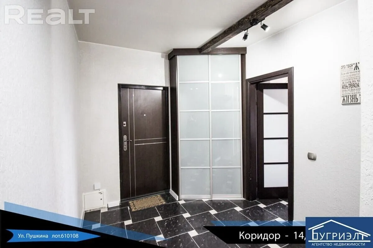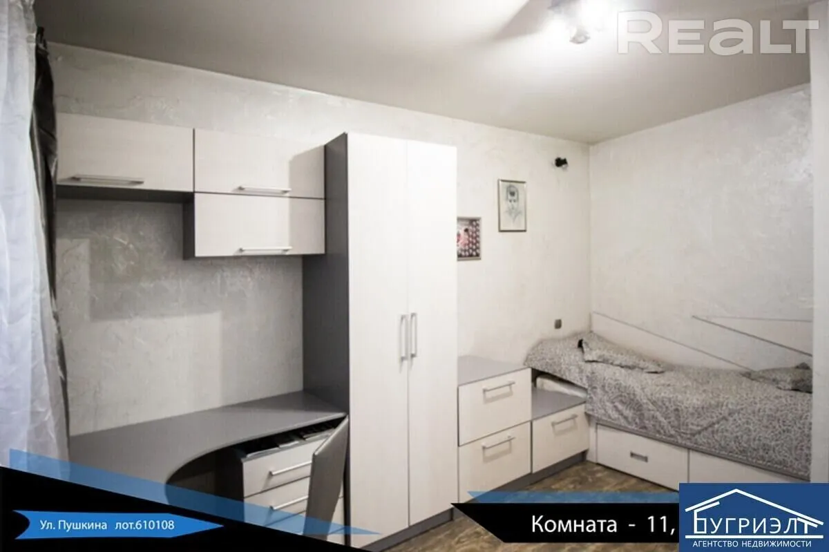В Гродно можно купить трехкомнатную квартиру на Пушкина. После продажи в ней остается вся мебель и техника. В зале — стильный ремонт, стена под дерево и открытые балки на потолке.