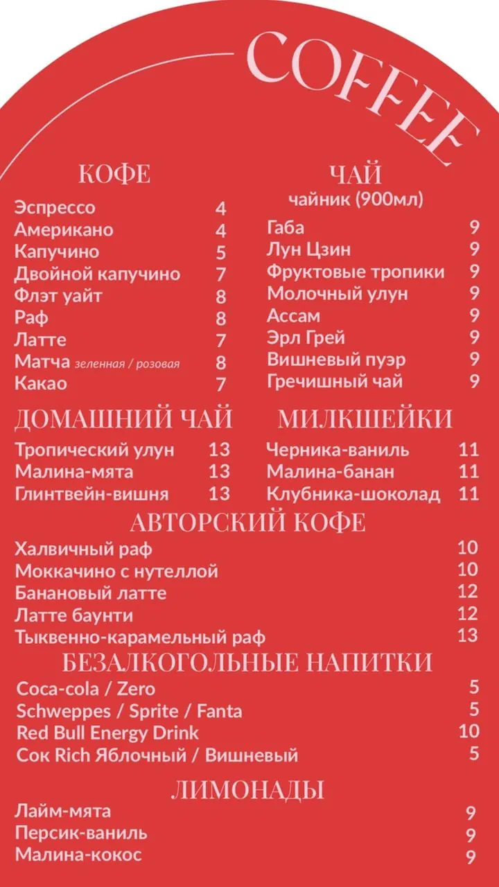 Выпить кофе в Myloverberry стоит от 4 (эспрессо, американо) до 8 рублей (раф, флэт уайт). Авторский кофе — вроде бананового латте или моккачино с нутеллой — стоит дороже: от 10 до 13 рублей.