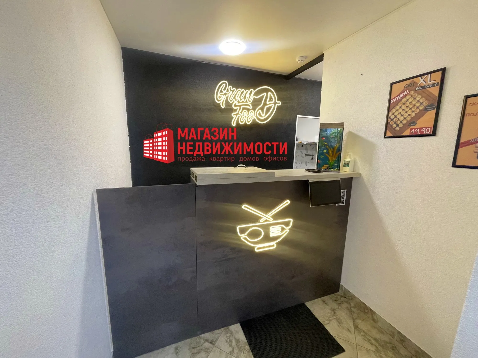 Суши-бар находится на первом этаже двухэтажного кирпичного здания. Отдельный вход — с улицы. Продавец отмечает, что это локация с постоянным пешеходным и автомобильным трафиком. Есть свой санузел и другие коммуникации, кроме газа. Помещение небольшое, общая площадь — 46,3 кв.м.