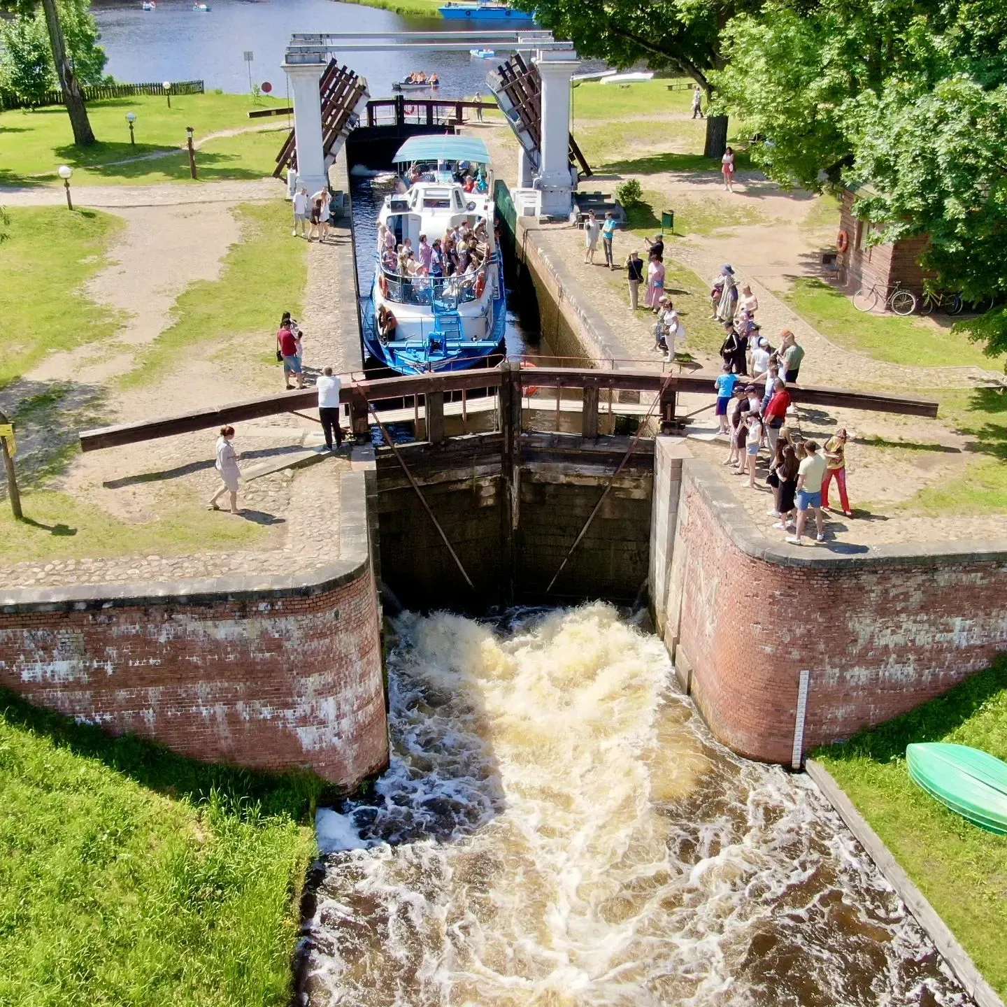 Также на Августовском канале можно взять на прокат лодку, катамаран или велосипеды. Доступна аренда домиков и навесов.