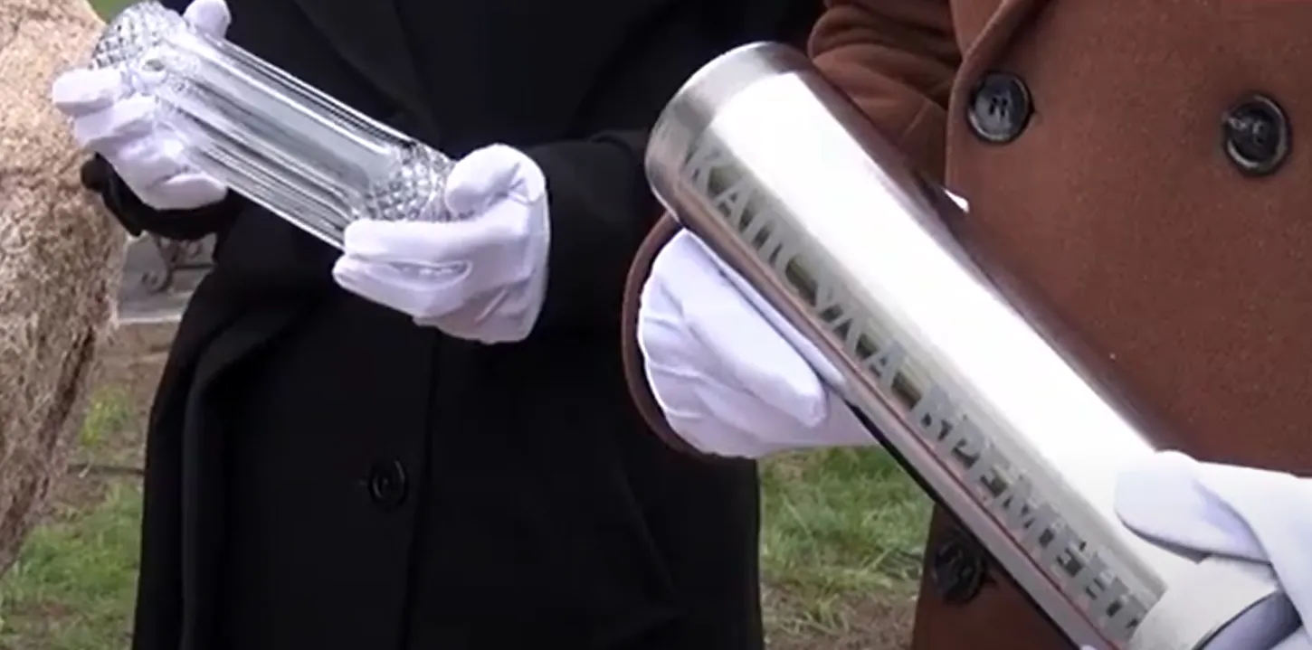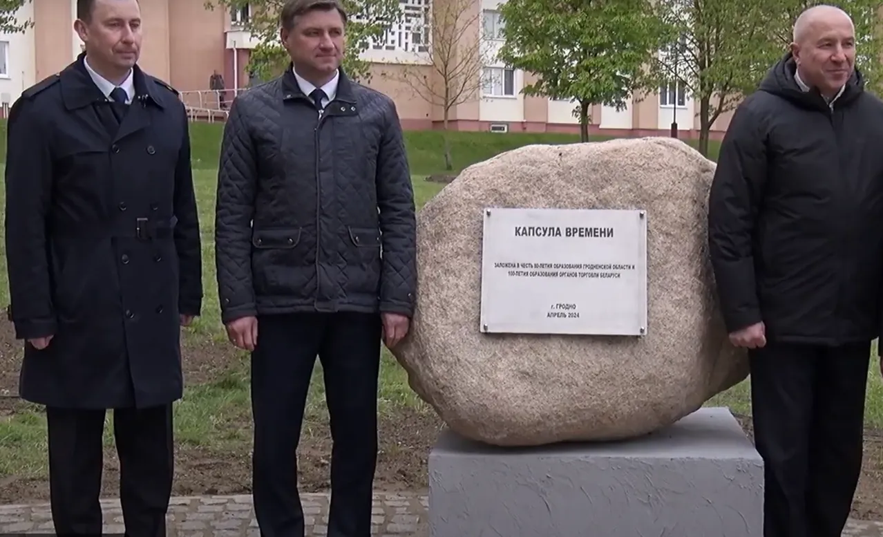 Хрустальную капсулу времени спрятали в валуне за памятной табличкой. В закладке капсулы и посадках участвовали председатель гродненского горисполкома Андрей Хмель, министр антимонопольного регулирования и торговли Беларуси Алексей Богданов и помощник Лукашенко Юрий Караев.