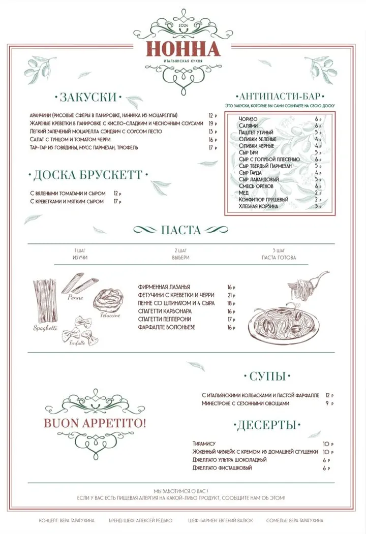 Меню и цены: шесть видов пасты, но есть и котлета с гречкой