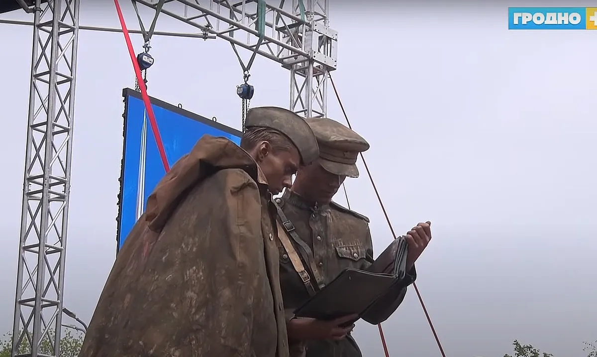 Еще до начала мероприятий помощник Лукашенко Юрий Караев установил на Гродненском драматическом театре копию знамени, вывешенного на Рейхстаге в Берлине при его взятии. «На нем указана дивизия, корпус и третья ударная армия, в составе которой воевали эти люди, которым выпало тяжелое испытание и одновременно честь штурмовать Берлин с остальными соединениями и объединениями Красной Армии, войти, как сейчас говорят, в центр принятия решений, в логово фашистского зверя, в Рейхстаг и поднять над главной точкой Берлина, а следовательно, и всего тогдашнего нацизма, Знамя Победы», — сказал при этом он.