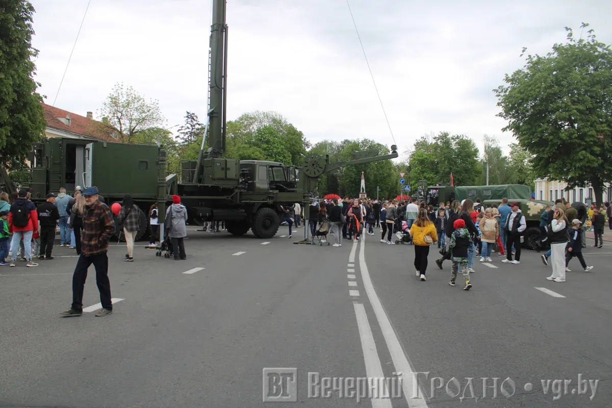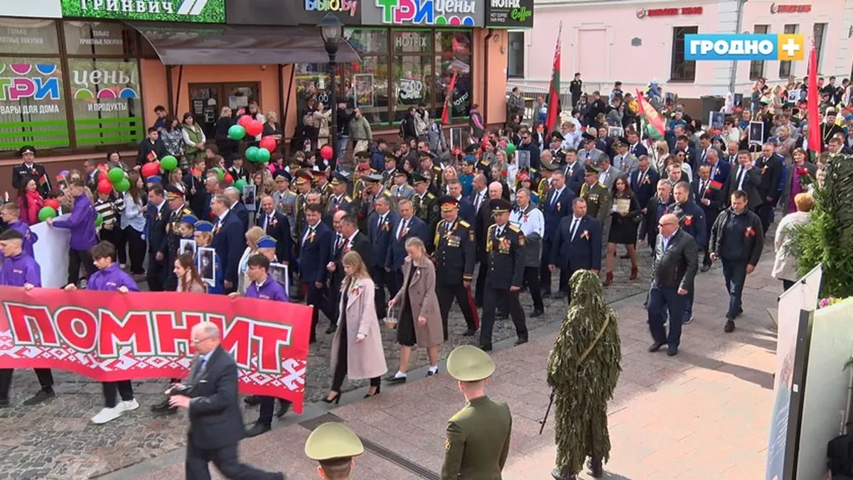 Празднование Дня Победы в Гродно начали с акции «Беларусь помнит» — шествия с портретами участников войны по Советской. Также был марш кадетов, вальс на площади и даже сплав на байдарках с портретами участников войны. Праздник завершили концертом российской группы «Любэ» и салютом.