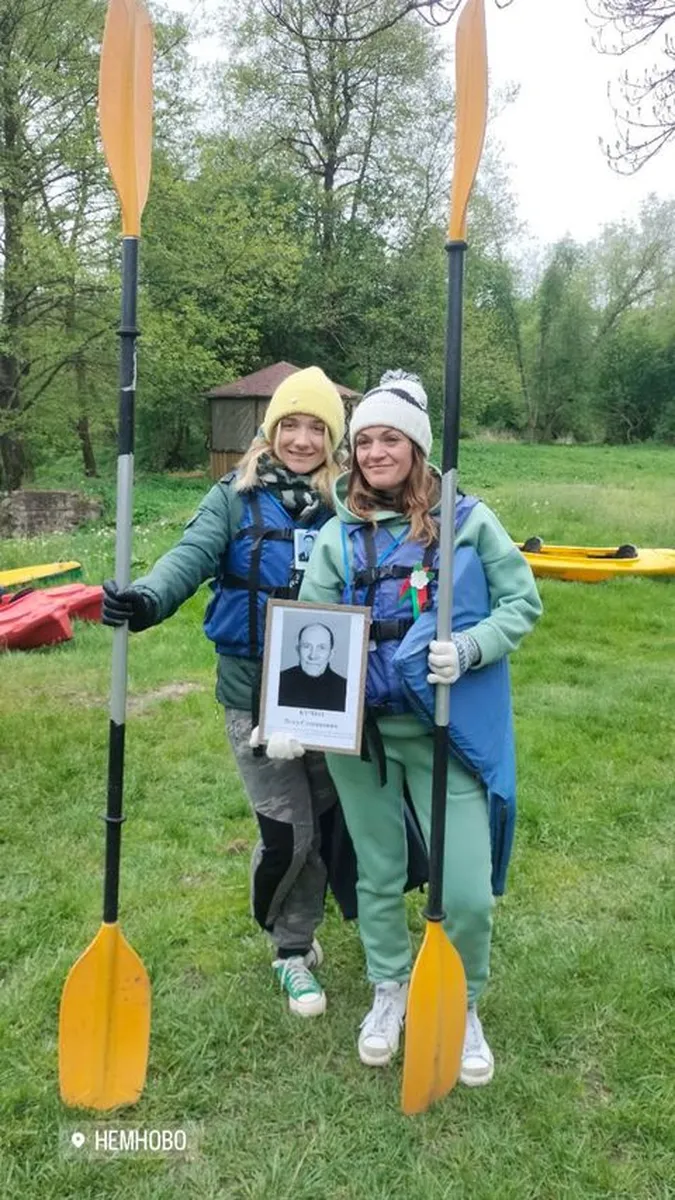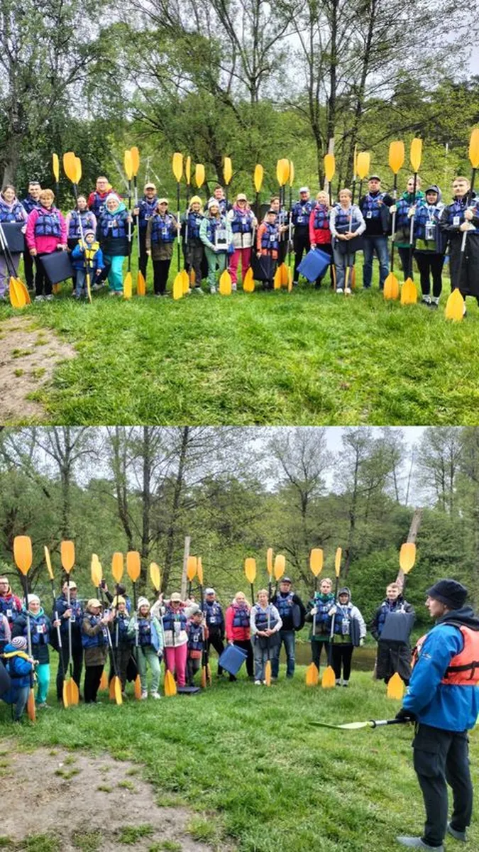 Необычный формат акции «Беларусь помнит» устроили на Августовском канале: участники сплавлялись на байдарках с портретами тех, кто воевал, на спасжилетах.
