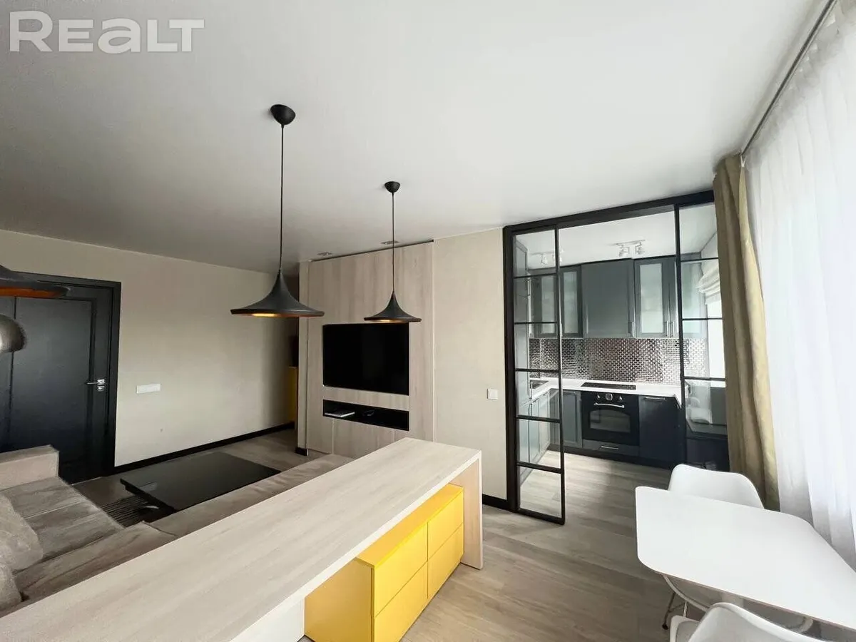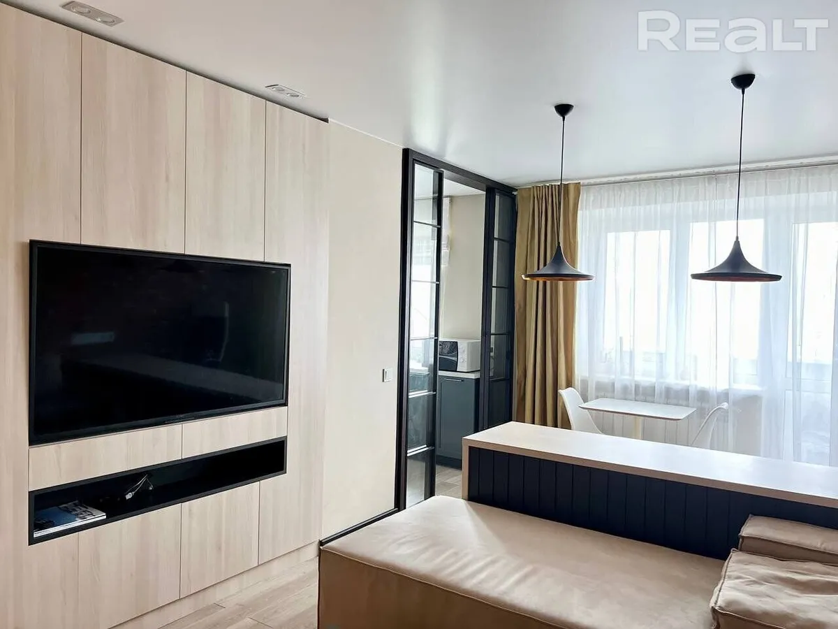Двухкомнатная квартира по ул. Стефана Батория, 10 продается в Гродно. Фишка квартиры — видеопроектор с экраном в спальне и большая кровать с ортопедическим матрасом. Новым владельцам остается вся техника и мебель.