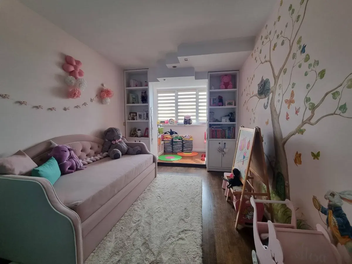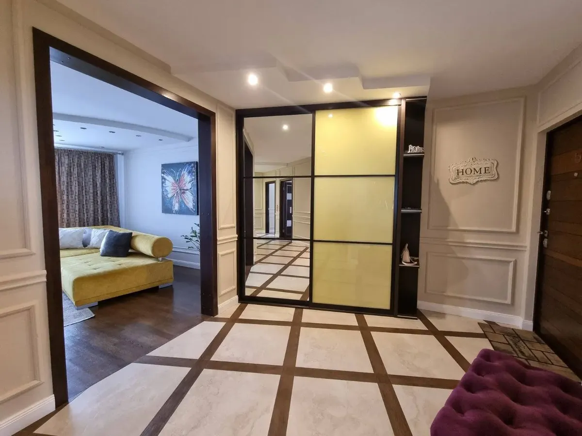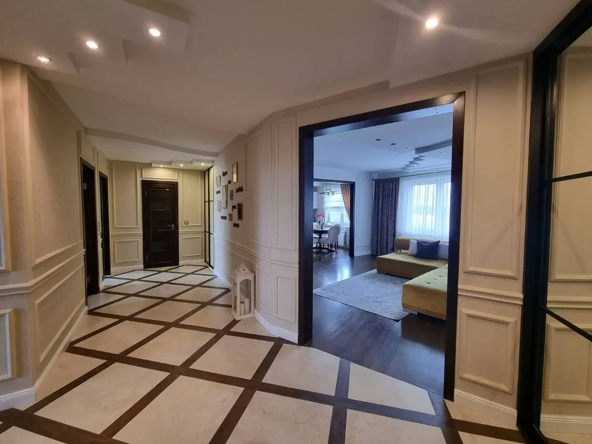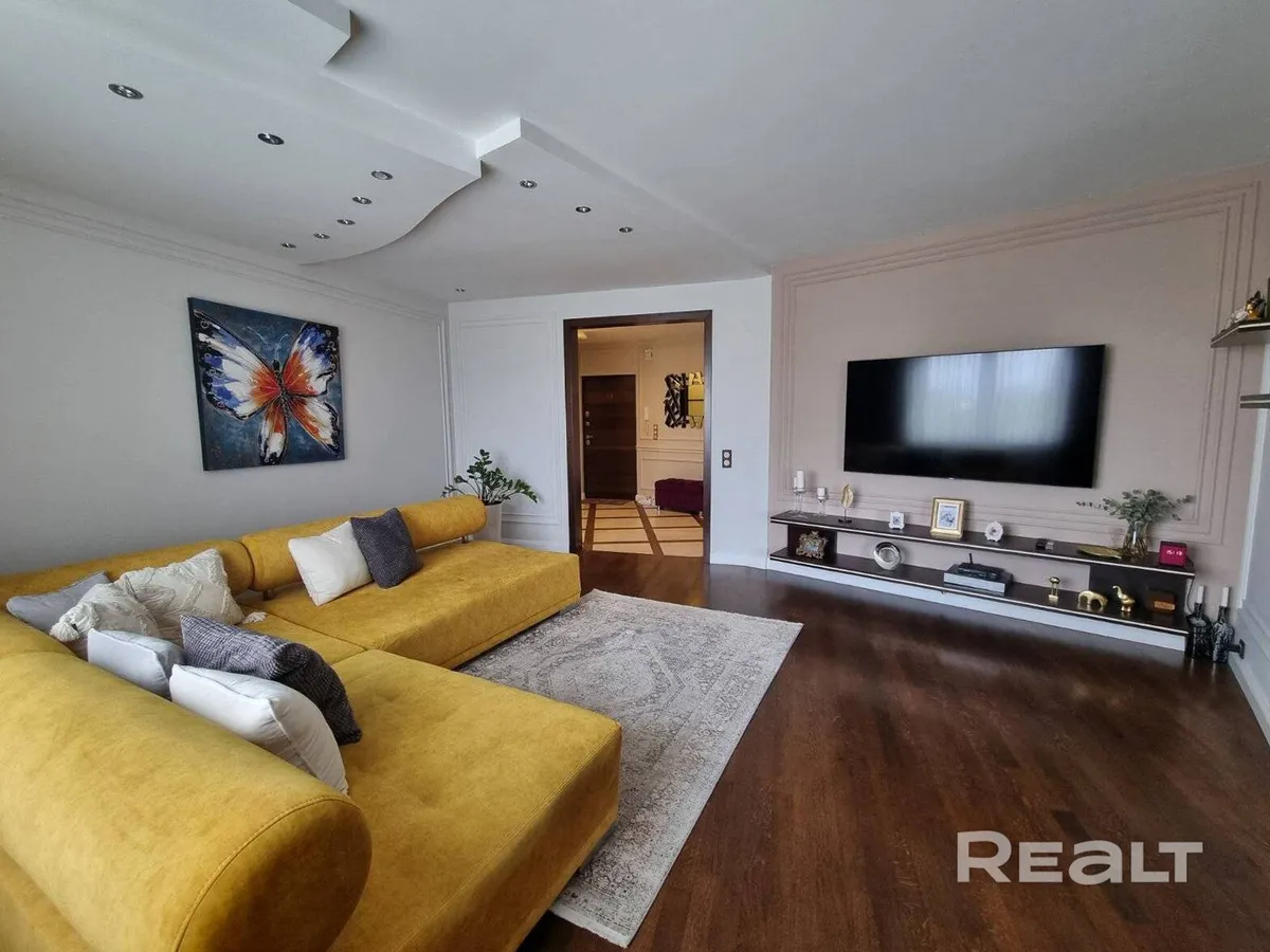 Четырехкомнатная квартира с дизайнерским ремонтом по ул. Советских Пограничников, 122 продается в Гродно. Вид из квартиры — на лесопарк Лососно. Мебель сделали на заказ. Текстиль на окнах делали на заказ дизайнеры.