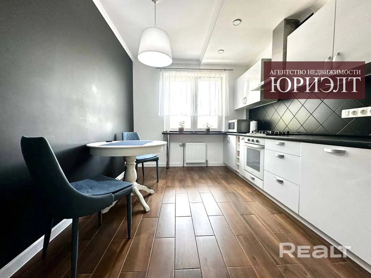 При ремонте использовали отделочные материалы высокого качества, утверждают хозяева. В ванной есть бойлер. Трубы там закрыли тумбочками. Входная дверь премиум класса с хорошей звукоизоляцией. Потолки на кухне и в коридоре сделали со встроенной подсветкой. В зоне кухни — многофункциональный гарнитур, встроенная варочная панель, духовой шкаф, вытяжка. Стены выкрашены в черный свет.