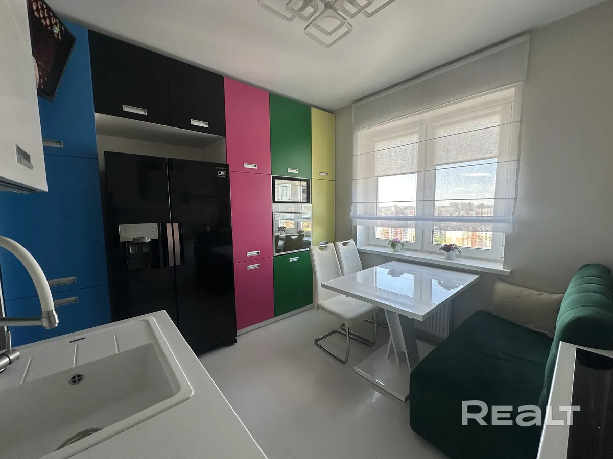 Общая площадь — 77.5 м². Квартира находится на последнем этаже 16-этажки по ул. Белые Росы, 67. Санузел — раздельный. В ванной комнате есть и ванна, и душевая кабина. Есть лоджия. Окна выходят во двор.