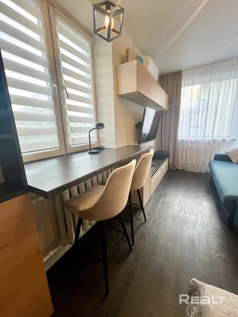 В Гродно продают однокомнатную квартиру-студию в центре по ул. Ленина, 6. На 30 квадратов здесь уместили два спальных места, гостиную, кухню и рабочее место. Квартира продается с мебелью и техникой. Она готова к проживанию. Место подходит для сдачи в краткосрочную аренду.