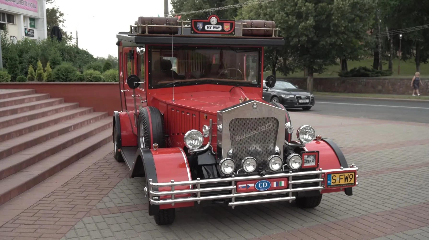Ретро-автомобиль «Mercer» приехал в Беларусь из Польши и сразу же стал героем соцсетей. Многие начали сравнивать авто с тем, что видели в мультике «Приключения поросенка Фунтика». Такая машина — единственная в своем роде. Ее 11 лет строил поляк Ежи Крыницки из Лодзи, вдохновившись автопромом 20-х годов XX века. Вместе с женой Доротой Юст-Крыницкой он решил покататься по Беларуси. Пара заехала в Лиду, где дала интервью местному телеканалу.