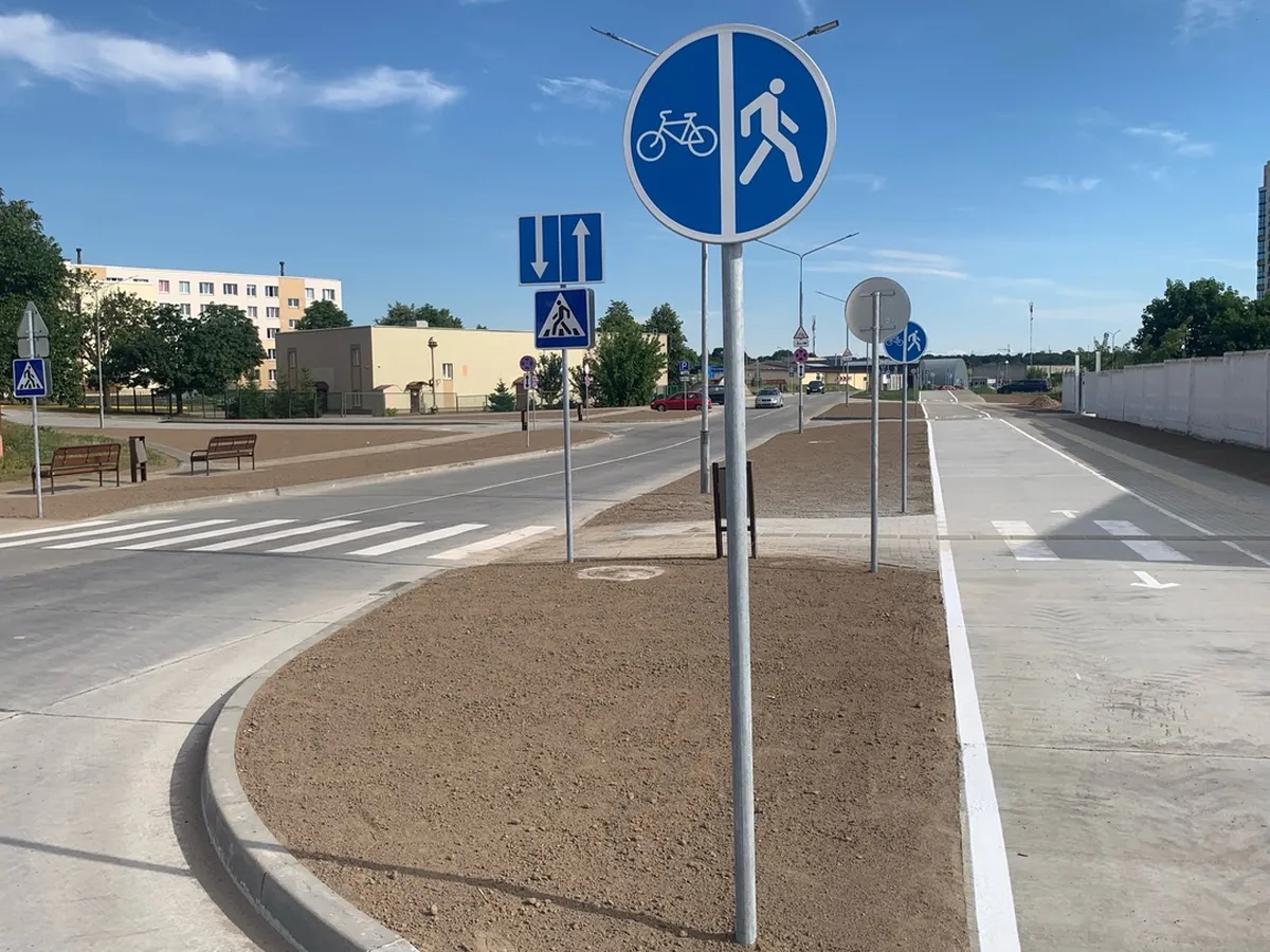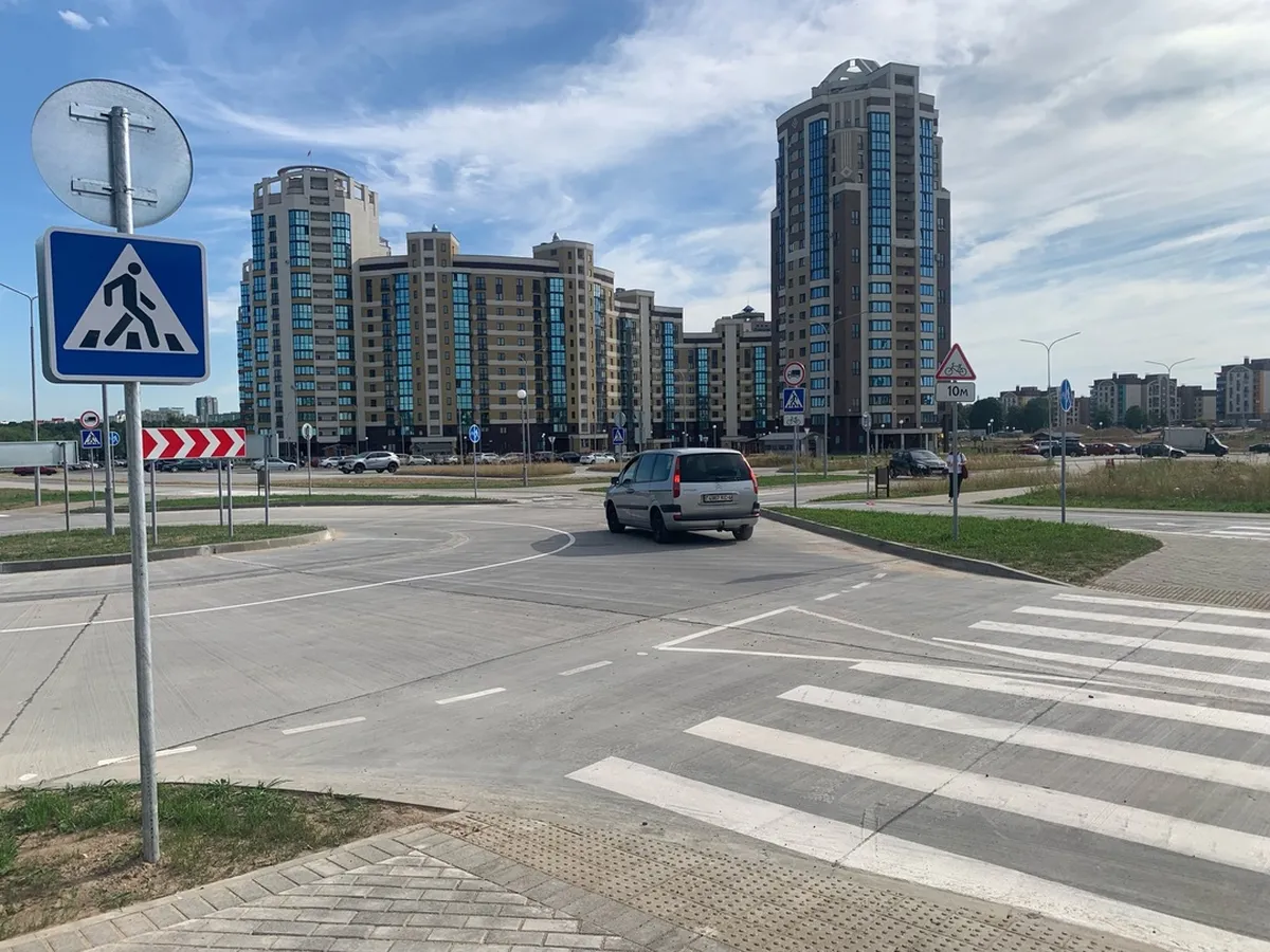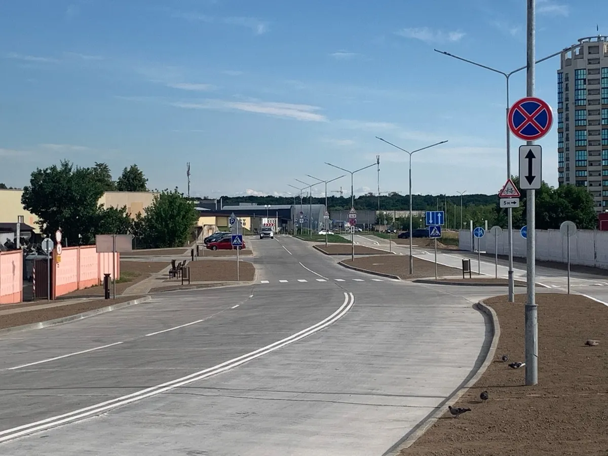 Новая улица ведет к домам-змейкам. Перед въездом в квартал со стороны Белуша есть кольцо. На ней есть велодорожки, пешеходные дорожки, дополнительная полоса для движения и парковочные места. Об ее открытии сообщили в ГАИ УВД Гродненского облисполкома.