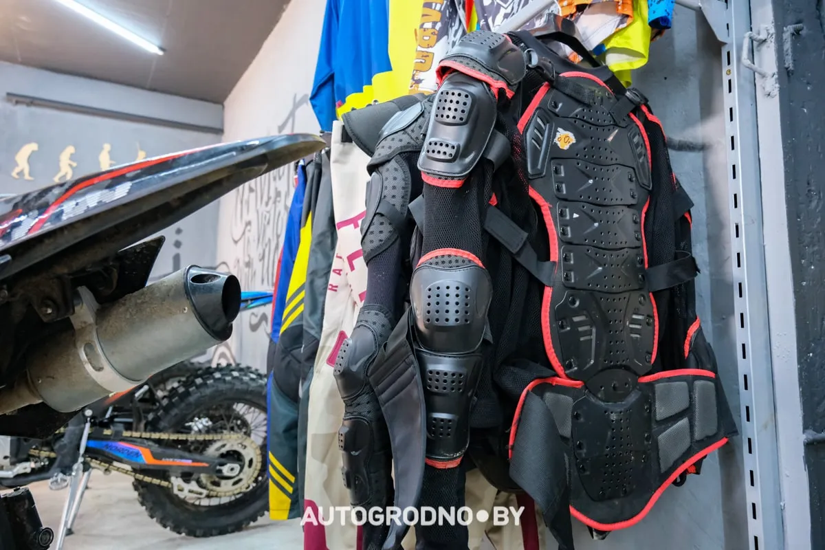 В защиту входят панцирь для тела, шлем, мотоочки, сапоги, джерси, балаклава, наколенники и нарукавники. За ее аренду нужно будет заплатить отдельно.
