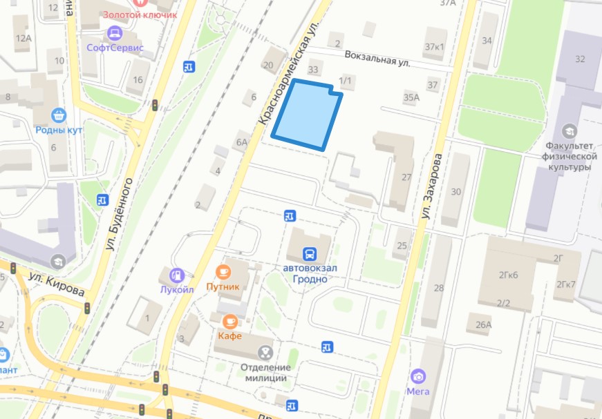 Участок на улице Красноармейской продавали с лета 2022 года, а выкупили 30 мая 2023 года. Единственным участником аукциона и покупателем стала гродненская фирма, владеющая торговым центром «Копеечка» на улице Саяпина в Грандичах.