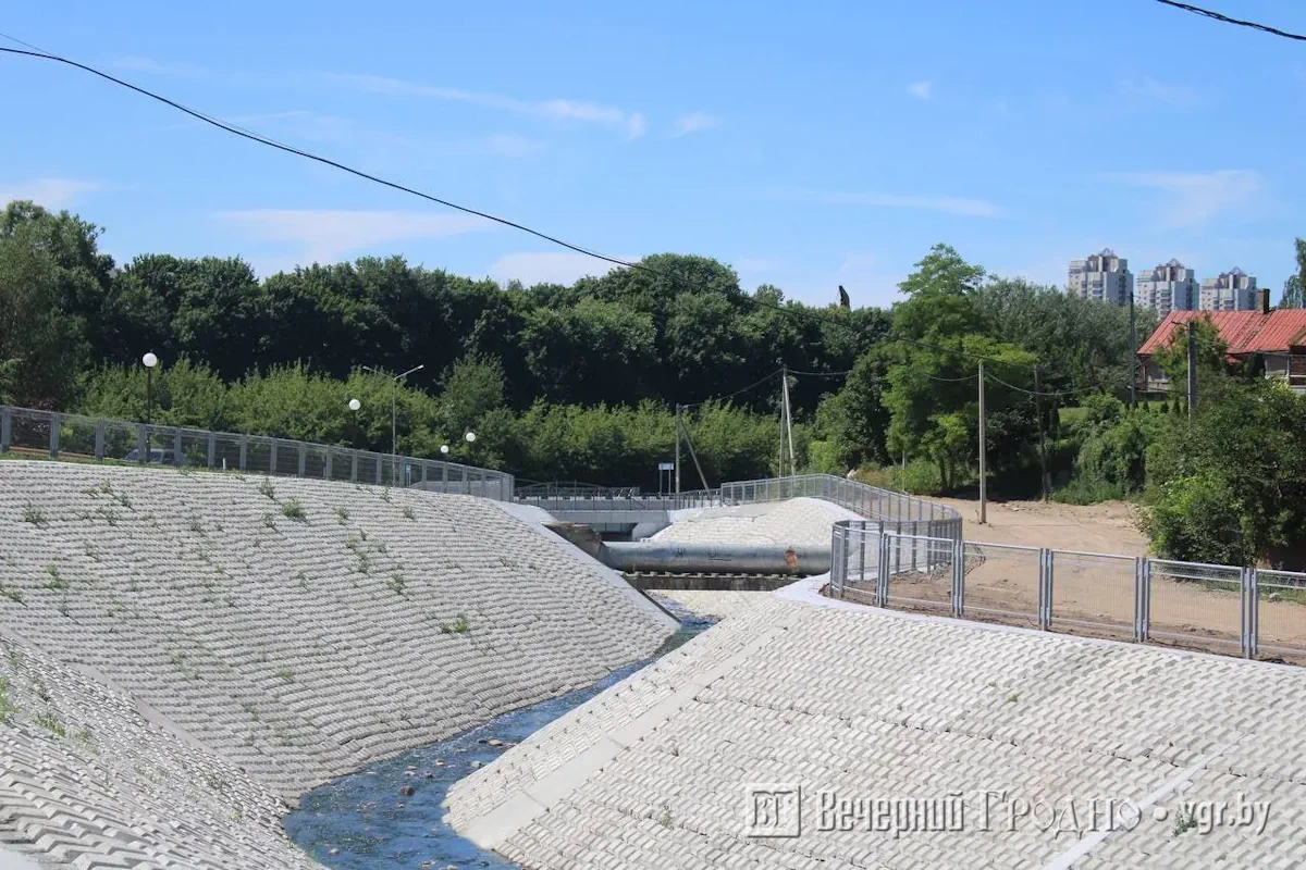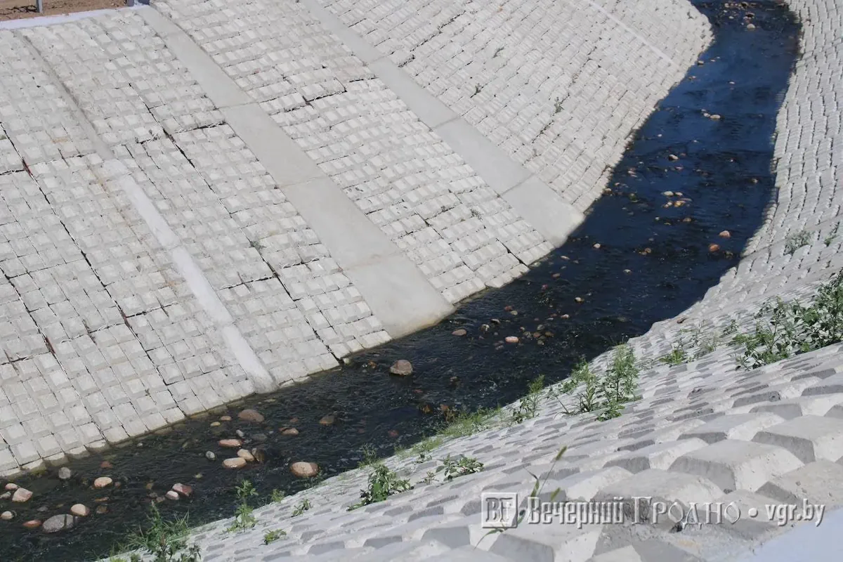 После обильных дождей начали разрушаться берега Городничанки в месте впадения речки в Неман. Их полностью заложили бетоном во время реконструкции моста по улице Рыбацкой. Благоустройство берегов закончили в конце июня, но, возможно, строителям придется туда вернуться.